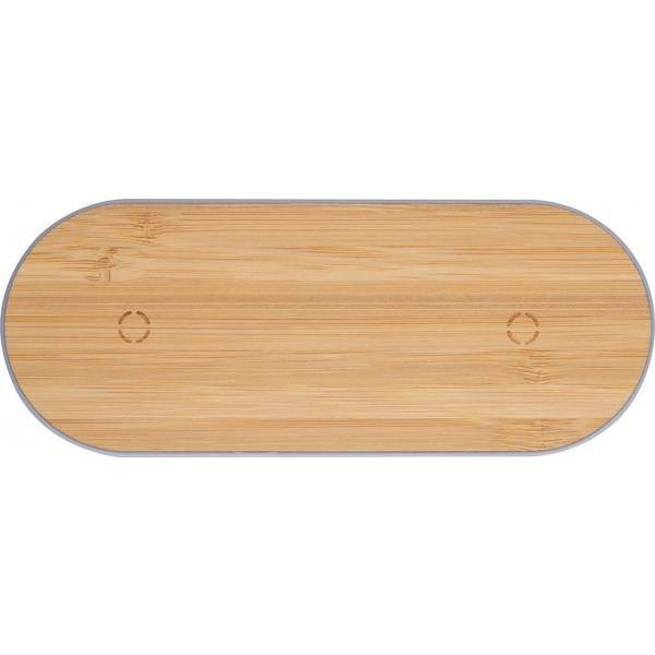 Podłużna ładowarka indukcyjna, wykonana z plastiku i bambusa. Posiada dwa punkty ładowania, dzięki czemu można ładować na raz dwa telefony. Kabelek USB jest dołączony do zestawu.