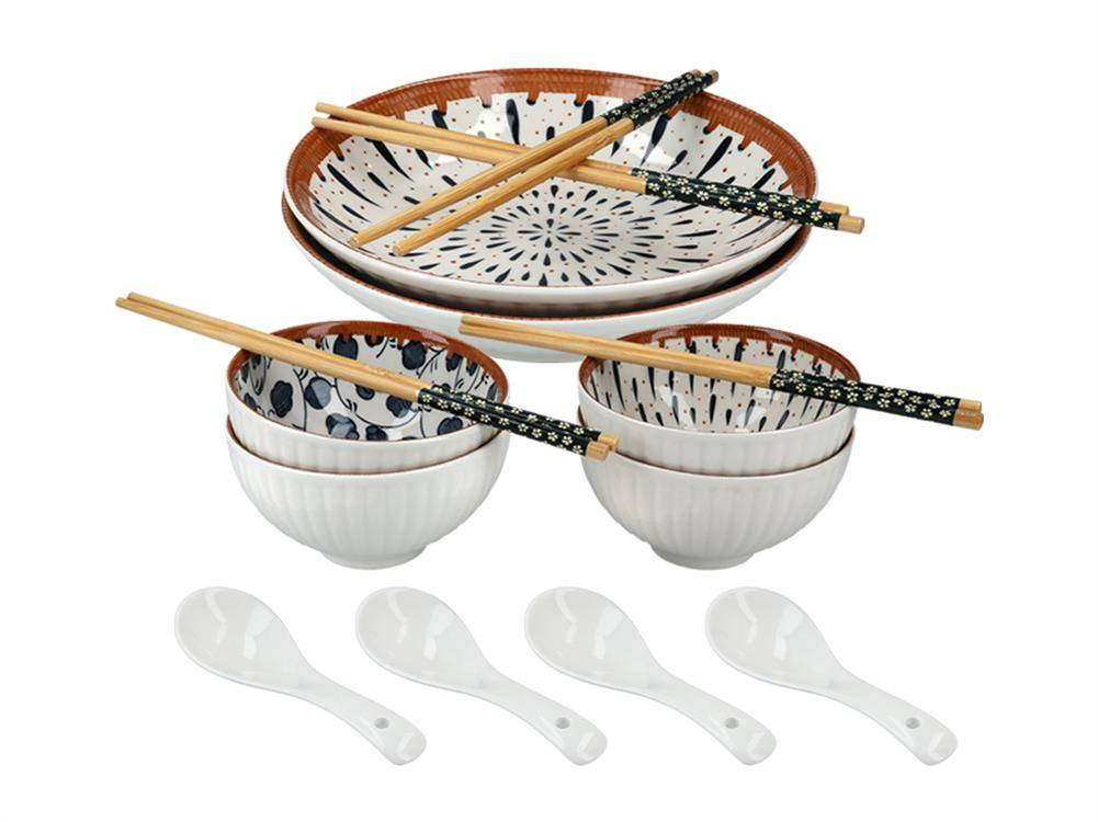 Kpl. 4 miseczek z łyżeczkami + 2 talerze +pałeczki