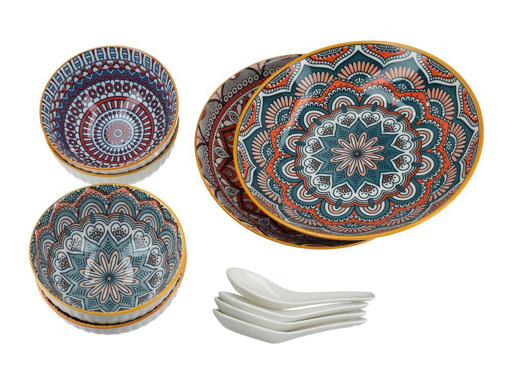 Kpl. 4 miseczek z łyżeczkami + 2 talerze