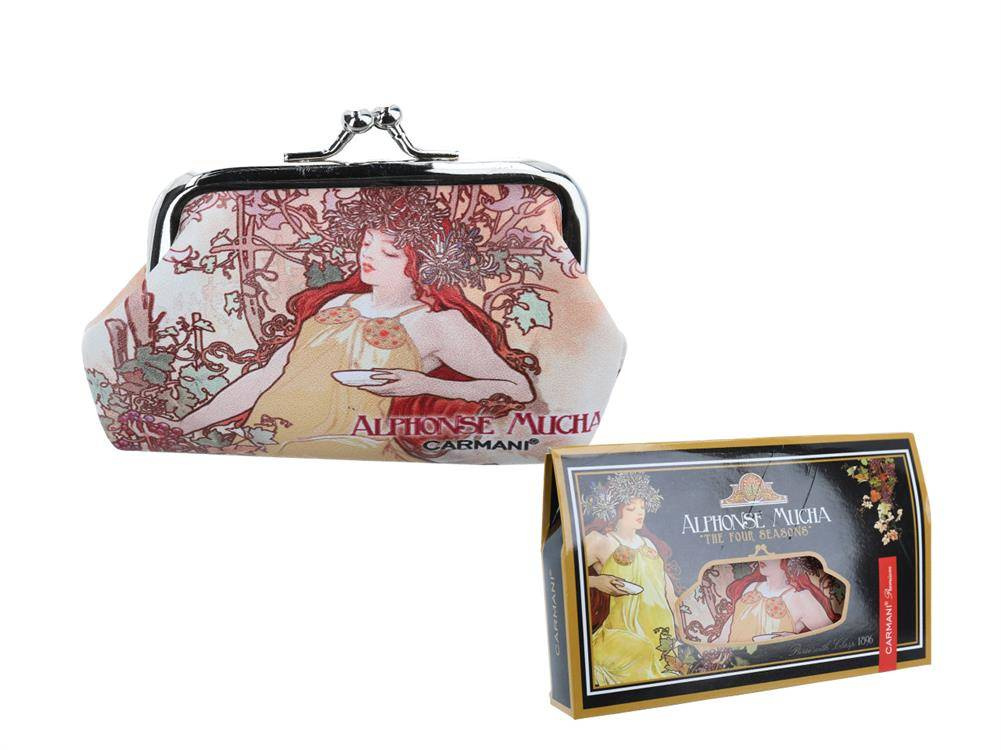 Duży, elegancki portfelik który przyda się każdemu. Główną jego cechą są zdobienia obrazami Alfonsa Muchy, a bogactwo wzorów sprawi, że każdy znajdzie coś wyjątkowego dla siebie.