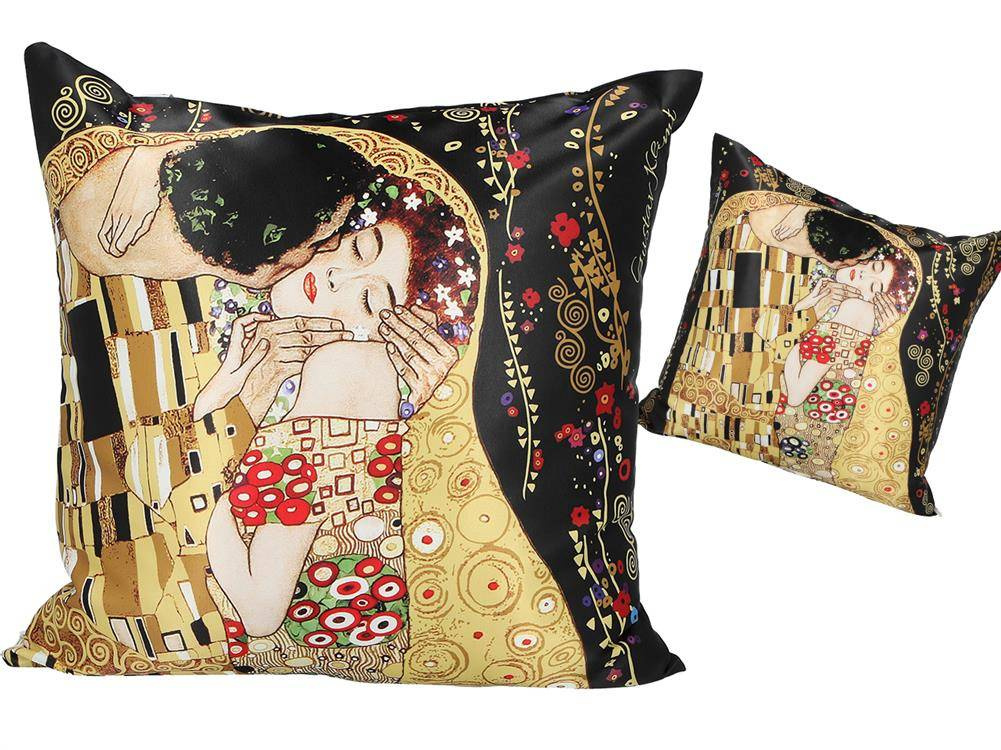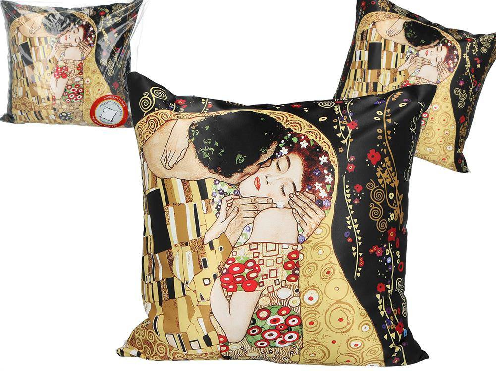 Poduszka z wypełnieniem/suwak - G. Klimt, Pocałunek (czarne tło) (CARMANI)