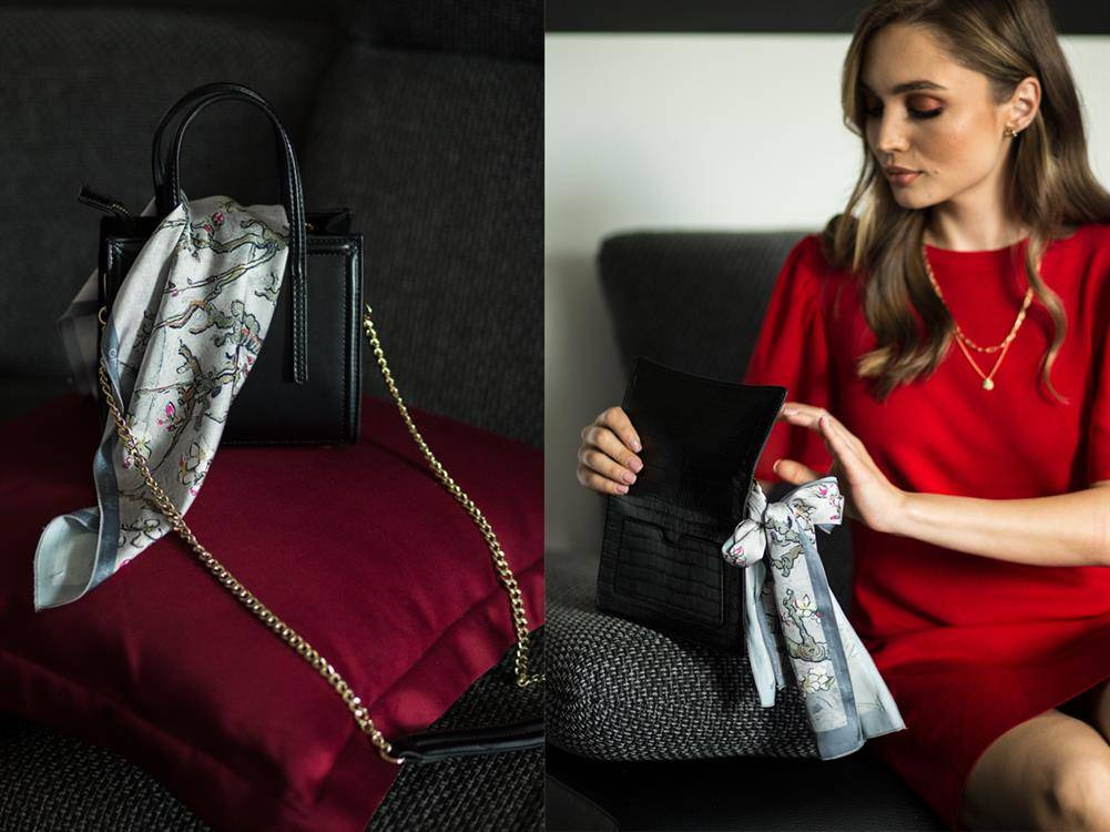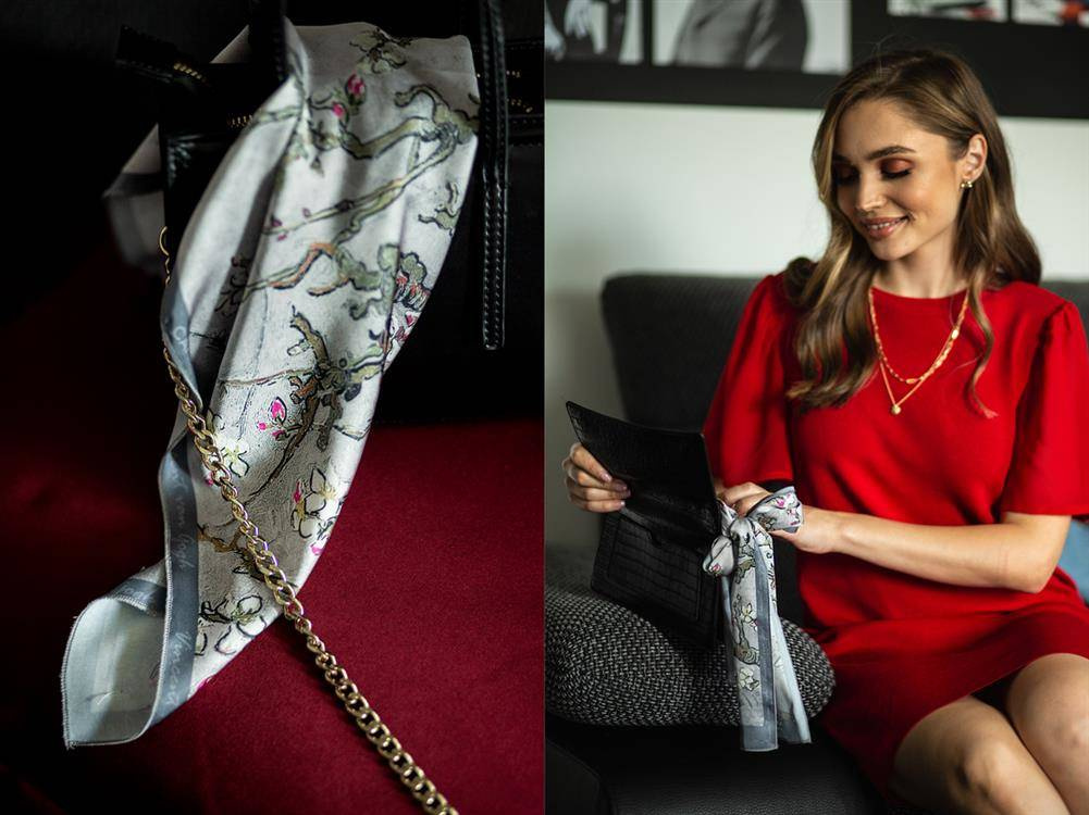 Przywieszki do torebki marki CARMANI wykonane są z innowacyjnej tkaniny tamina szlachetna, która pozwala na wykonanie misternych wzorów przy zachowaniu jedwabistego dotyku.