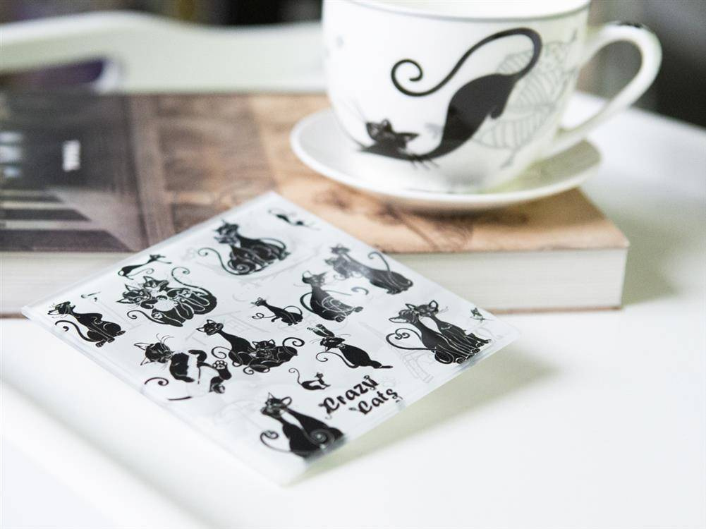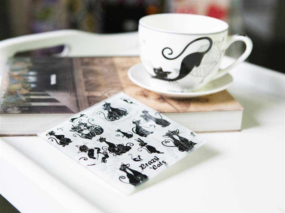 Gustowna, kwadratowa podkładka pod kubek z kocim motywem. Wykonana ze szkła, przez co bardzo łatwo ją umyć. Zabezpieczona silikonowymi nóżkami. Unikalny design i staranne wykonanie sprawi, że podkładki podkreślą wystrój każdego wnętrza.
