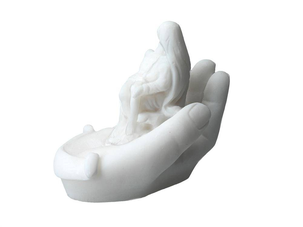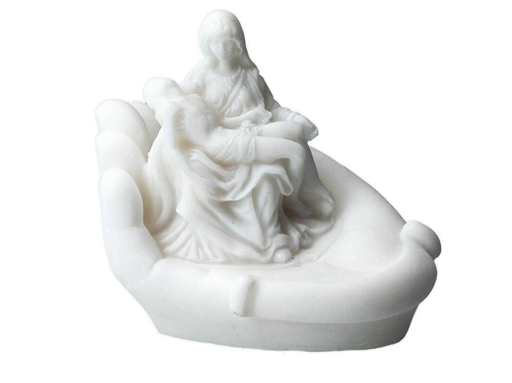 Alabastrowa figurka przedstawiająca Maryję trzymającą w ramionach zdjętego z krzyża Jezusa. Całość została osadzona w dłoni. Od czasów starożytnych alabaster był wysoko cenionym kamieniem ozdobnym i dekoracyjnym. Niezliczona ilość wzorów stanowi