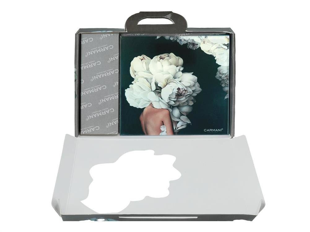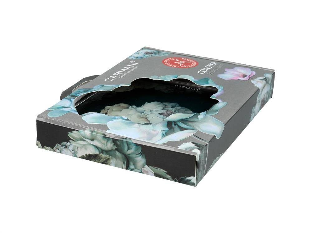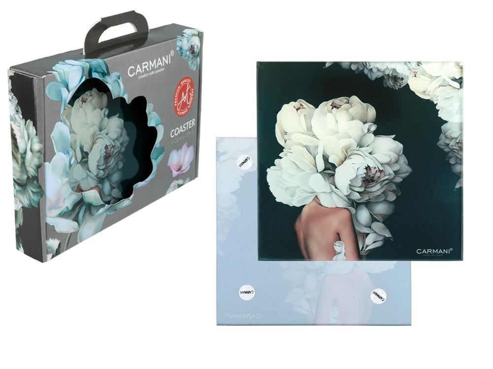 Gustowna, kwadratowa podkładka pod kubek. Wykonana ze szkła, przez co bardzo łatwo ją umyć. Zabezpieczona silikonowymi nóżkami. Unikalny design i staranne wykonanie sprawi, że podkładki podkreślą wystrój każdego wnętrza.