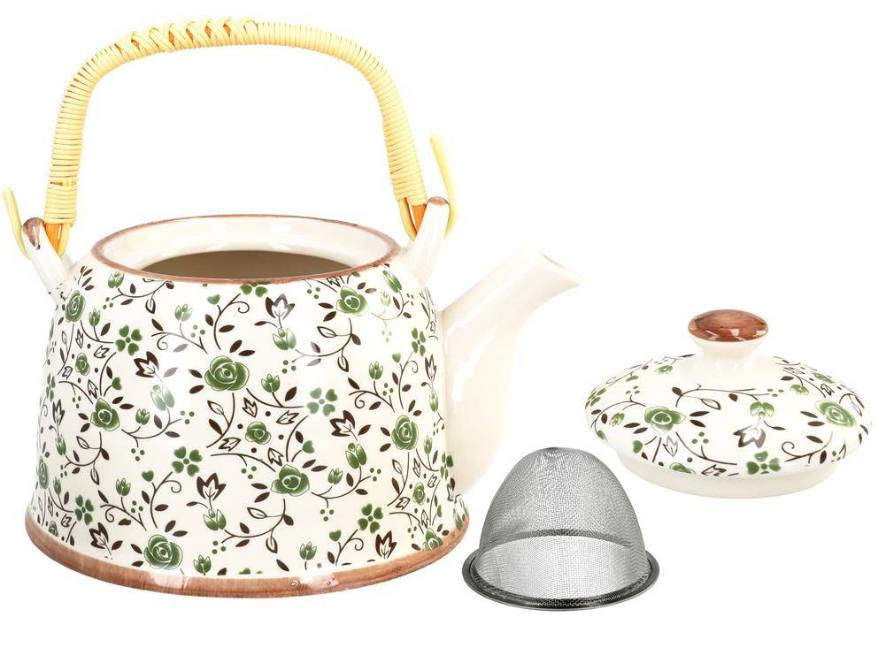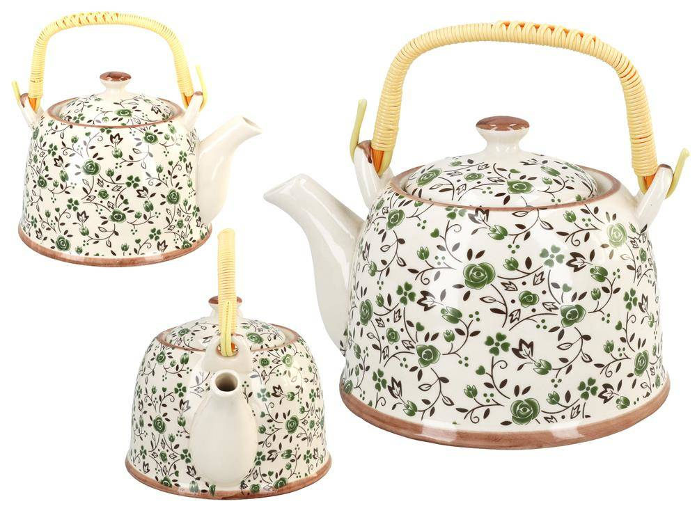 Gustowny, ceramiczny czajnik z metalowym zaparzaczem. Dostępny w kilku atrakcyjnych wzorach i kolorach. Ceramiczny czajnik utrzymuje temperaturę zaparzonej herbaty na długo.