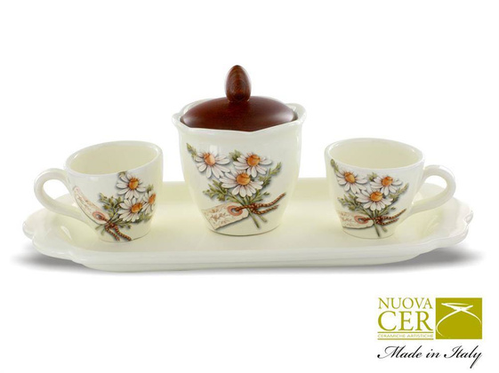 Urokliwa taca z filiżankami i cukiernicą wykonana z ceramiki o bardzo delikatnym. kremowym odcieniu. dekorowana motywami polnych kwiatów. Piękny. kwiatowy ornament przywodzi na myśl spacery po pachnących polach i łąkach z dzieciństwa. Możliwość zakupPotrzebujesz pomocy? Masz pytania?Zadaj pytanie a my odpowiemy niezwłocznie, najciekawsze pytania i odpowiedzi publikując dla innych.