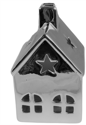 Domek ceramiczny srebrny duży
