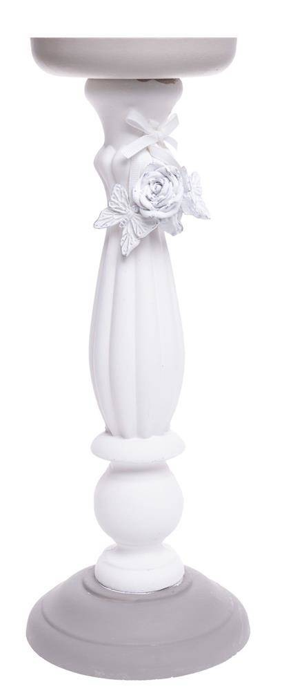 Świecznik drewniany z kwiatkami i motylami biało-beżowy duży