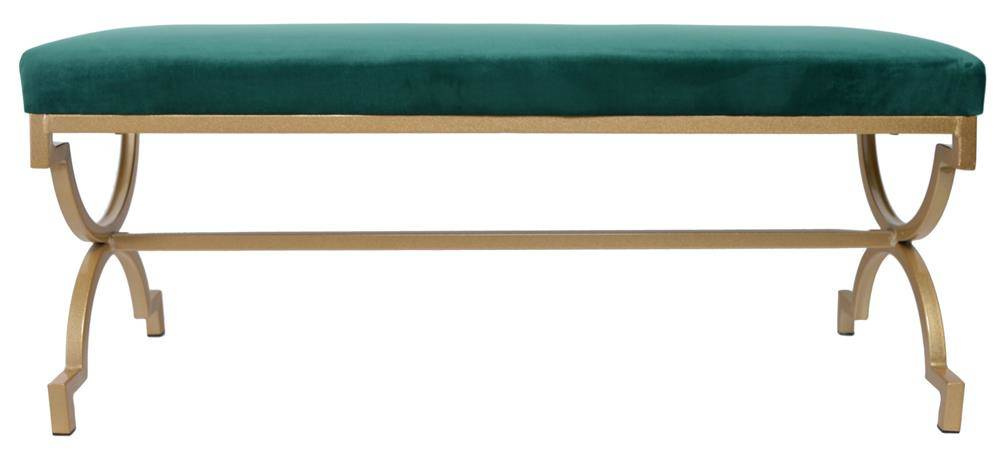 Ławeczka metalowa z welurowym siedziskiem butelkowa zieleń