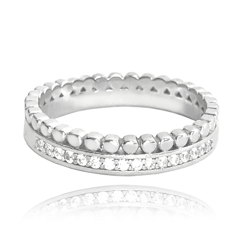 MINET Podwójny pierścien srebrny z białymi cyrkoniami wielkość 14