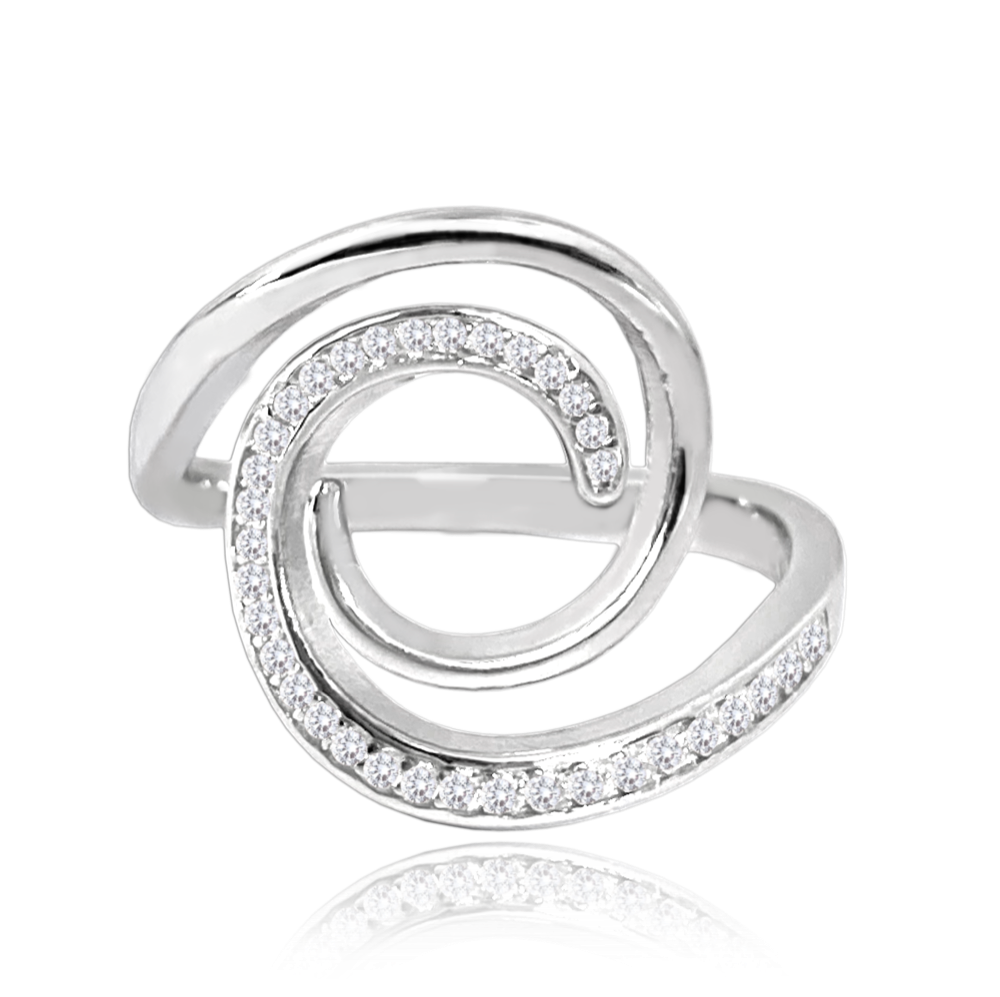 MINET Pierścien srebrny SPIRALA z białymi cyrkoniami wielkość 15