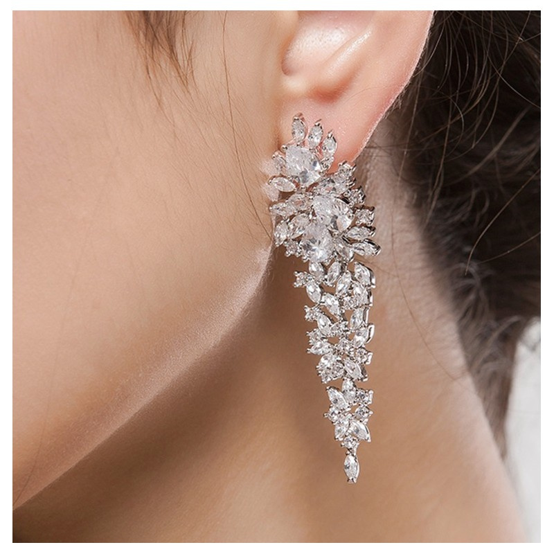 Kolczyki ślubne wizytowe wiszące z kryształkami stal szlachetna KSL85