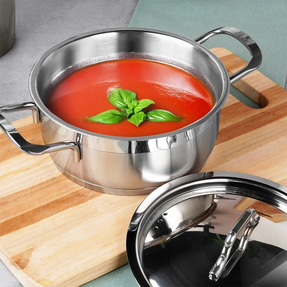 - Najwyższej jakości stal szlachetna 18/10 - matowa z dodatkowym pasem połysku w górnej zewnętrznej części naczynia.