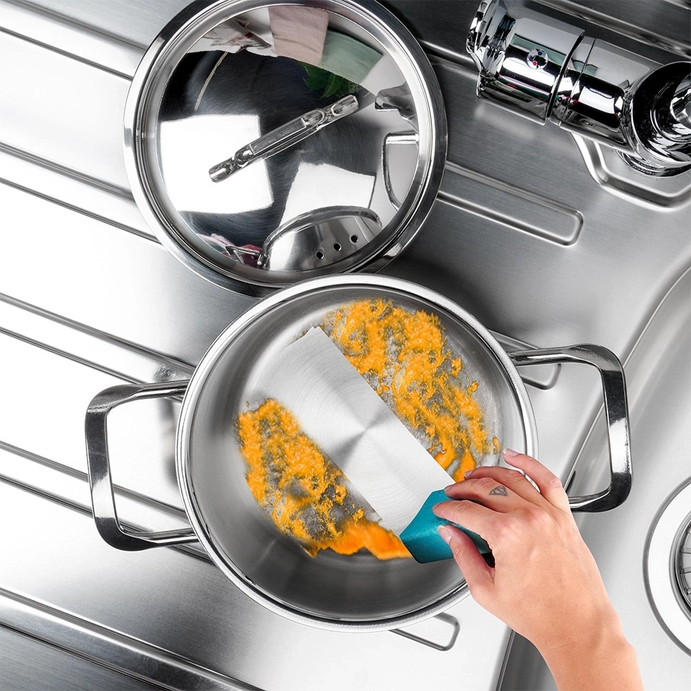 - Najwyższej jakości stal szlachetna 18/10 - matowa z dodatkowym pasem połysku w górnej zewnętrznej części naczynia.