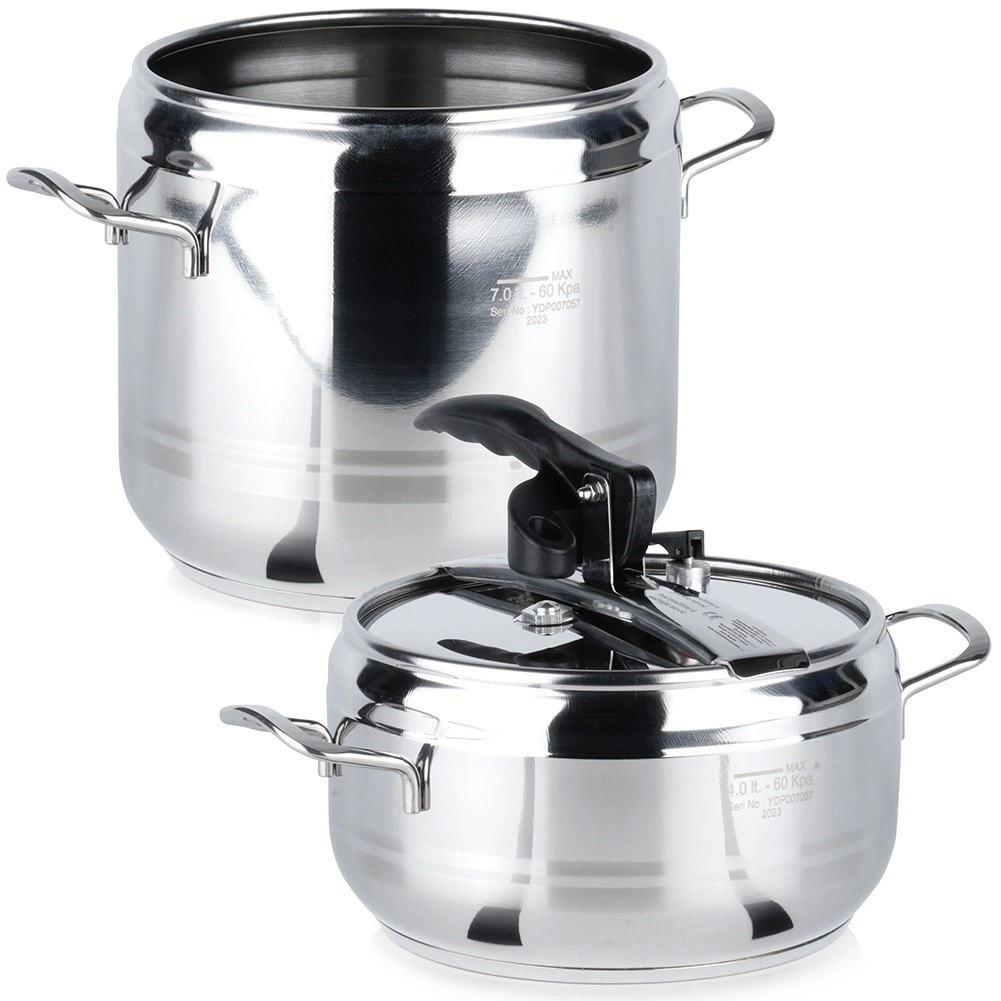 - Zestaw zawiera 2 naczynia + 1 pokrywa szybkowarowa.