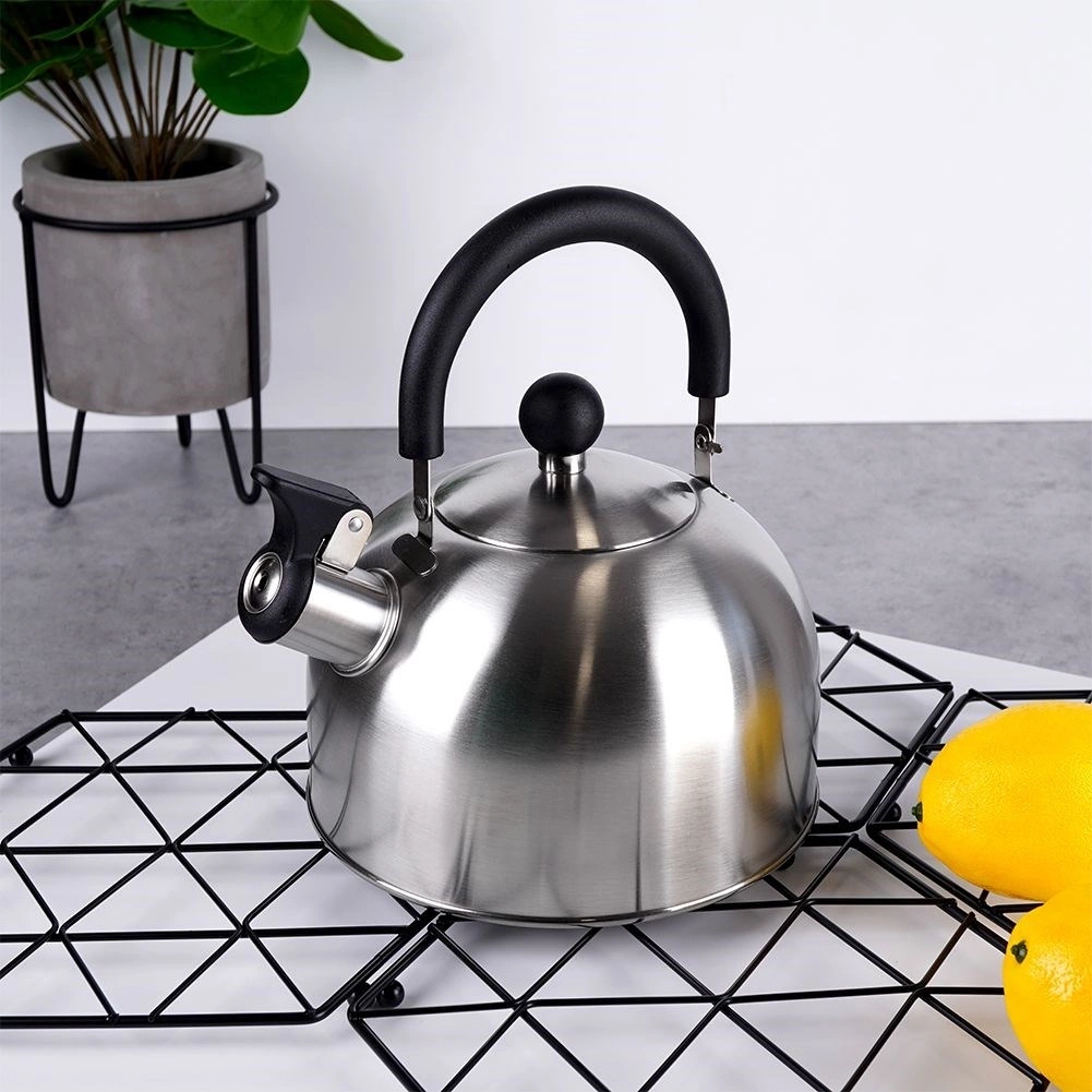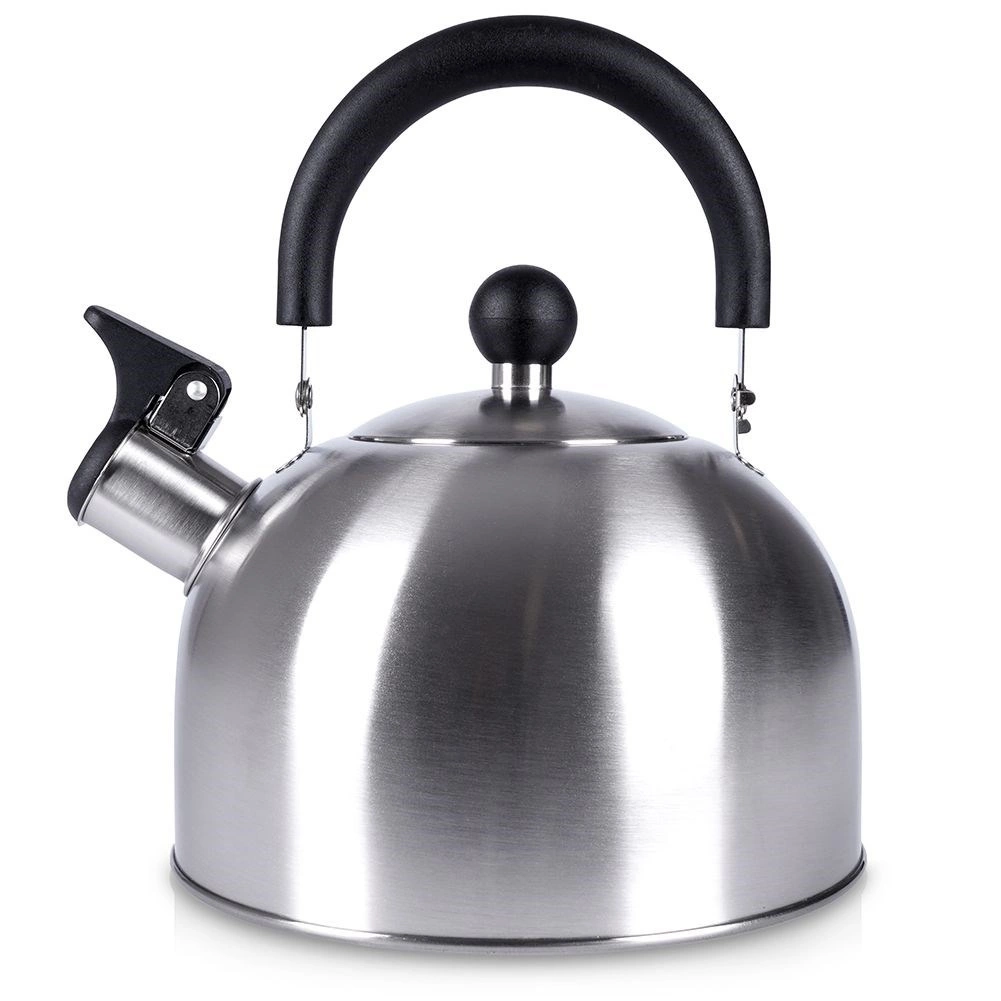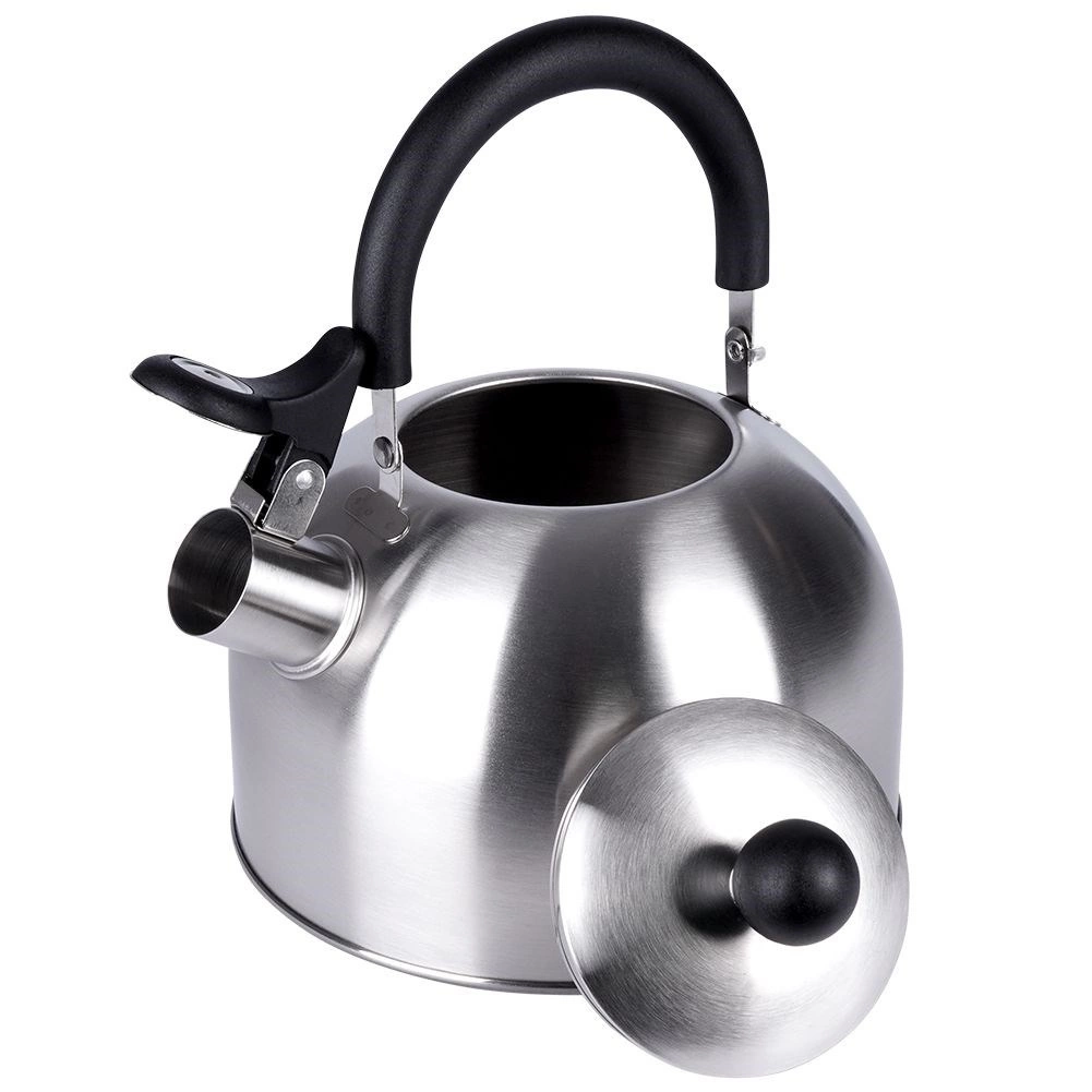 - Stalowy czajnik z poręczną rączką. Wyposażony w uchylny gwizdek, który informuje o zagotowanej wodzie. Nadaje się do każdego rodzaju kuchenek wraz z indukcją.