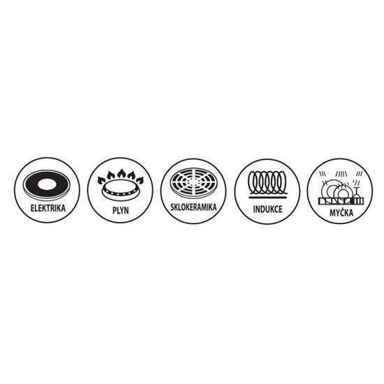 - Nadaje się na kuchnie gazowe, elektryczne, ceramiczne, halogenowe oraz indukcję. Posiada małą średnicę dna, nie wszystkie kuchenki indukcyjne są przystosowane, prosimy o sprawdzenie w instrukcji kuchenki.