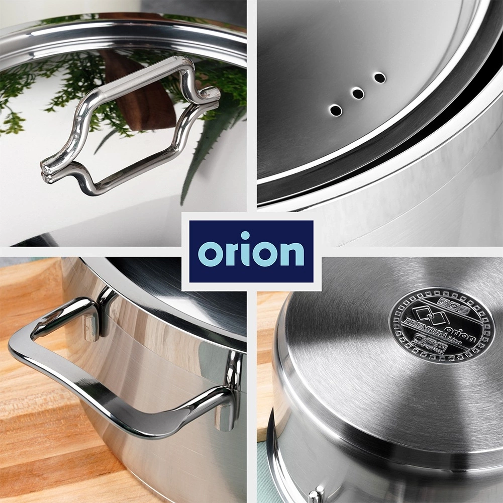 - Zestaw garnków wykonanych z wysokiej jakości stali nierdzewnej 18/10. Dno akutermiczne wielowarstwowe, pokrywa oraz uchwyty stalowe. Nadają się na każdy rodzaj kuchenek wraz z indukcją.
