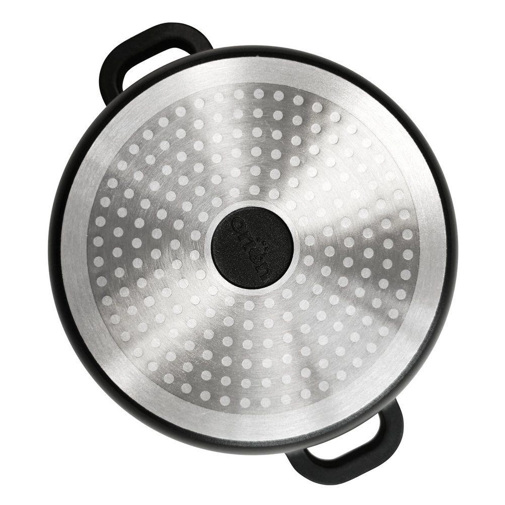 - Garnek z powłoką nieprzywierającą PFLUON GRANIT. Wyposażony w pokrywkę wraz z otworem na ucieczkę nadmiaru pary. Można stosować na wszystkich typach kuchenek wraz z indukcją.