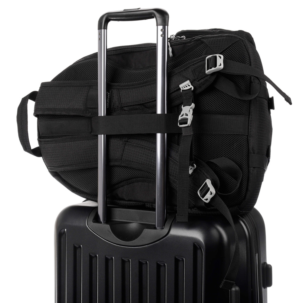 Wykonany został z wysokiej jakości poliestru Ripstop, odpornego na różnego rodzaju zanieczyszczenia. Rip-Stop to technika wzmacniania materiału poprzez dodanie w stałych odstępach dodatkowego, mocniejszego włókna. Materiał tego typu łatwo można rozpoznać, ze względu na wypukłą kratkę. Skutecznie zapobiega rozdzieraniu się materiału. Regulowane paski na plecy, z ruchomą i miękką poduszką, zapewniają komfortowe noszenie i szybką wentylację.