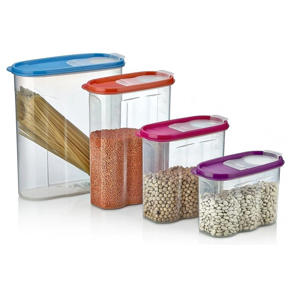 - Pojemnik z zamknięciem dozującym nadaje się do przechowywania mąki, zboża, kaszy, cukru, płatków śniadaniowych i innych produktów sypkich.