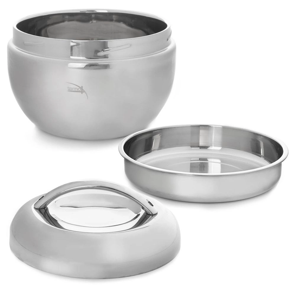 - Termomisa z zewnątrz jak i wewnątrz wykonana ze stali nierdzewnej. Podtrzymuje ciepło do dwóch godzin. Wewnątrz dodatkowa stalowa miska np. na zupę.