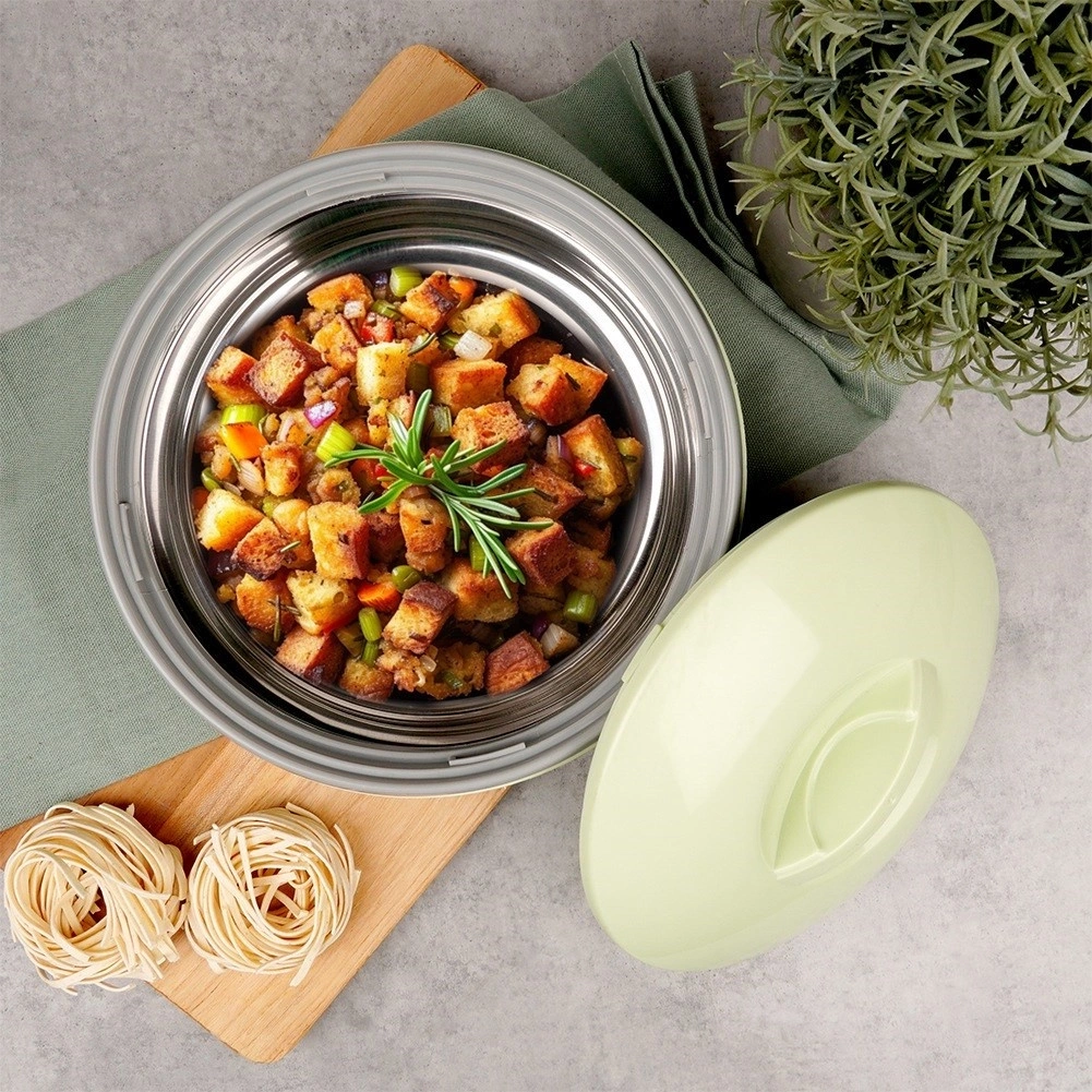 - PRAKTYCZNA - Termomisa do utrzymywania ciepła przechowywanych potraw. Termos obiadowy ma pojemność maksymalną 1,5 litra a pojemność użytkowa wynosi 1,3 litry. Termomisa ma wymiary 20 x 12 cm. Termomisa z serii Venus.