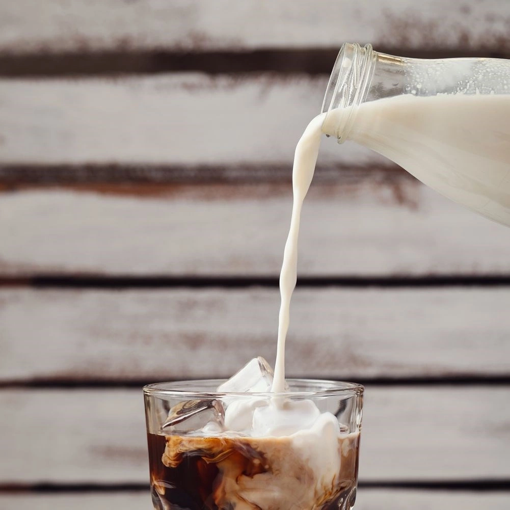 - Szklana butelka na mleko. Posiada białą zakrętkę. Idealnie sprawdzi się do przechowywania mleka, świeżego soku, lemoniady i innych napojów.