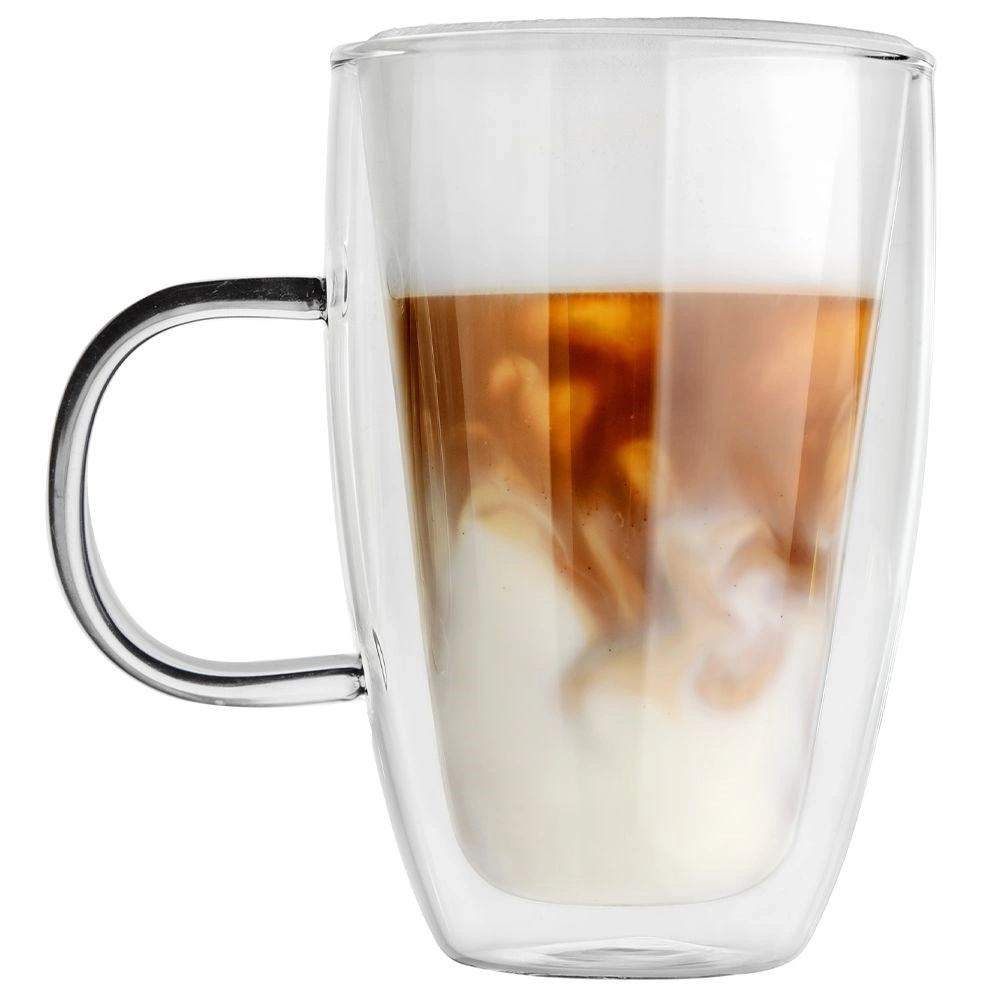 - Szklanka termiczna z podwójną ścianką w nowoczesnym designie. Zwiększona odporność na wysokie i niskie temperatury, zarysowania, pęknięcia i chemikalia.