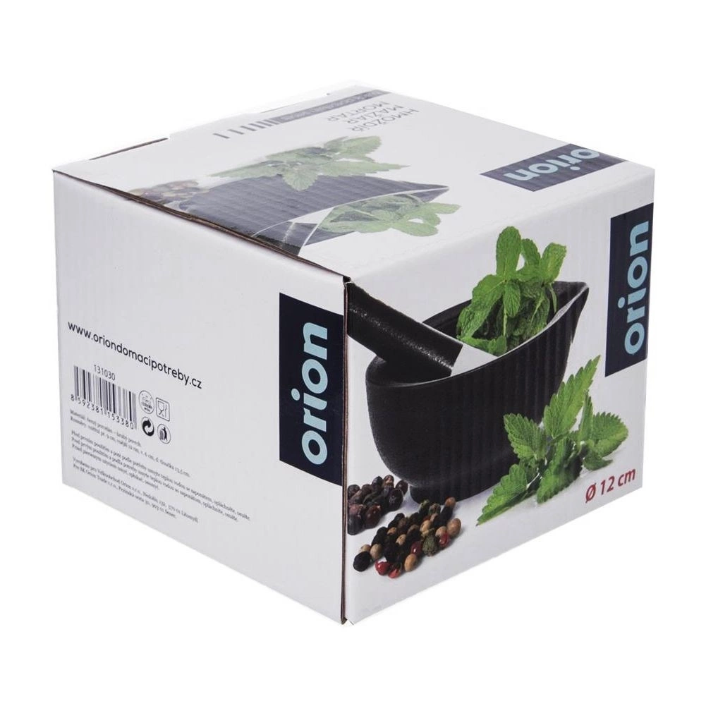 Moździerz z tłuczkiem wykonany z porcelany. Wyjątkowo przydatny w kuchni podczas ucierania przypraw, nasion, ziół i orzechów. Dzięki swojej solidnej konstrukcji będzie niezbędnym narzędziem w Twojej kuchni. Oryginalny produkt czeskiej marki Orion. Wyprodukowano zgodnie z europejskimi standardami.