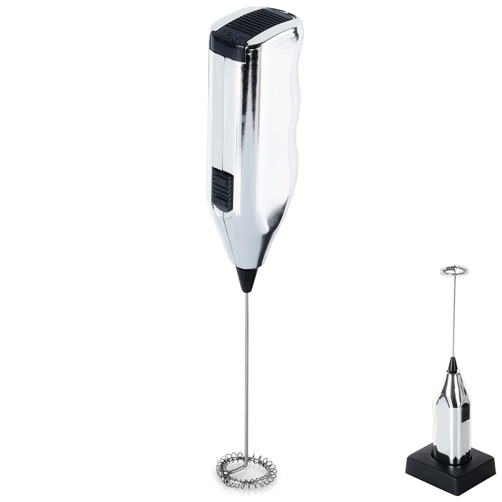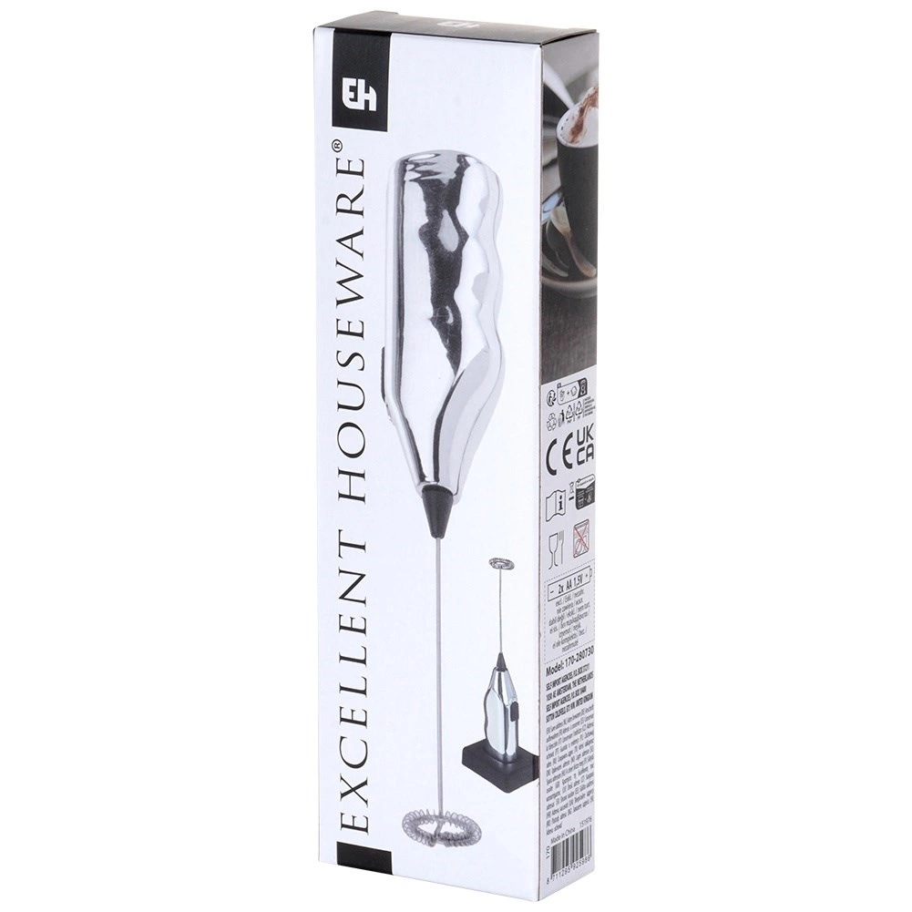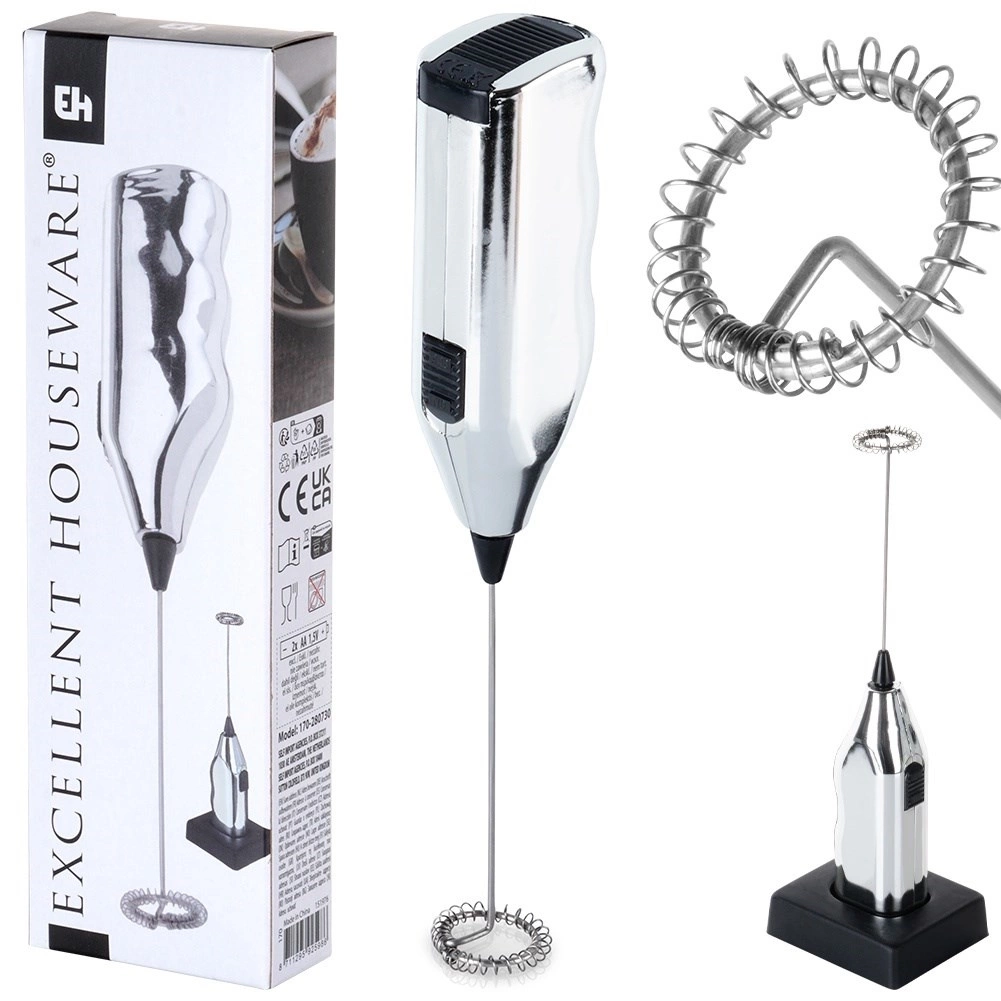 - Spieniacz elektryczny do mleka pomoże przygotować cappuccino, latte macchiato. W zestawie plastikowy stojak. Zasilanie 2 x 1,5V bateria AA (brak w zestawie).