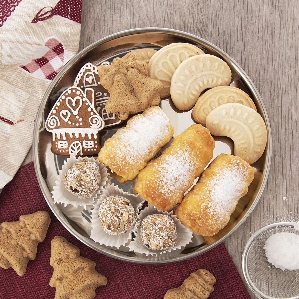 - Okrągła taca do serwowania kanapek, przekąsek, przystawek oraz ciasteczek. Ładnie wykonana, solidna, nie wykrzywia się. Wykonana ze stali nierdzewnej.