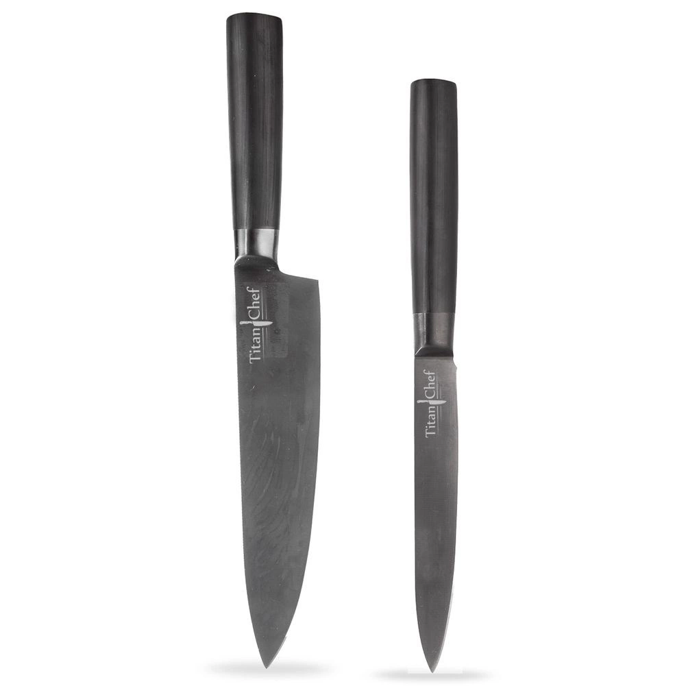 Zestaw komplet noży kuchennych TITAN CHEF nóż noże kuchenne stalowo-tytanowe 2 sztuki