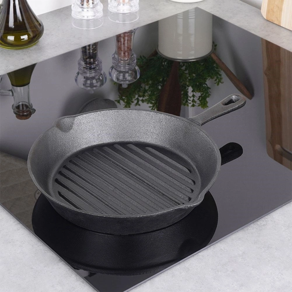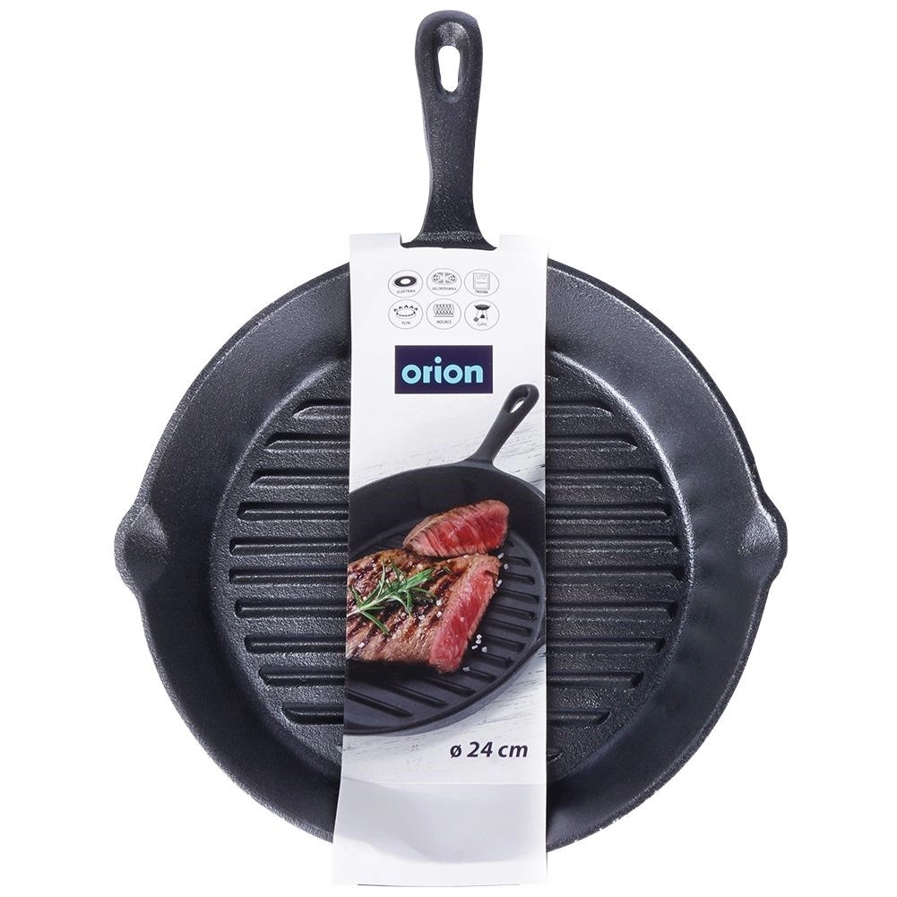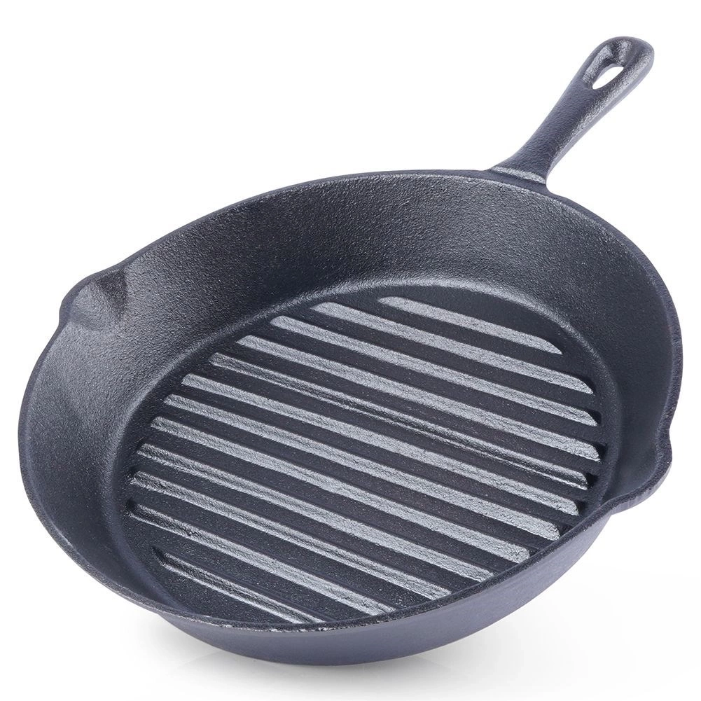 Patelnia żeliwna grillowa okrągła do grillowania 24 cm