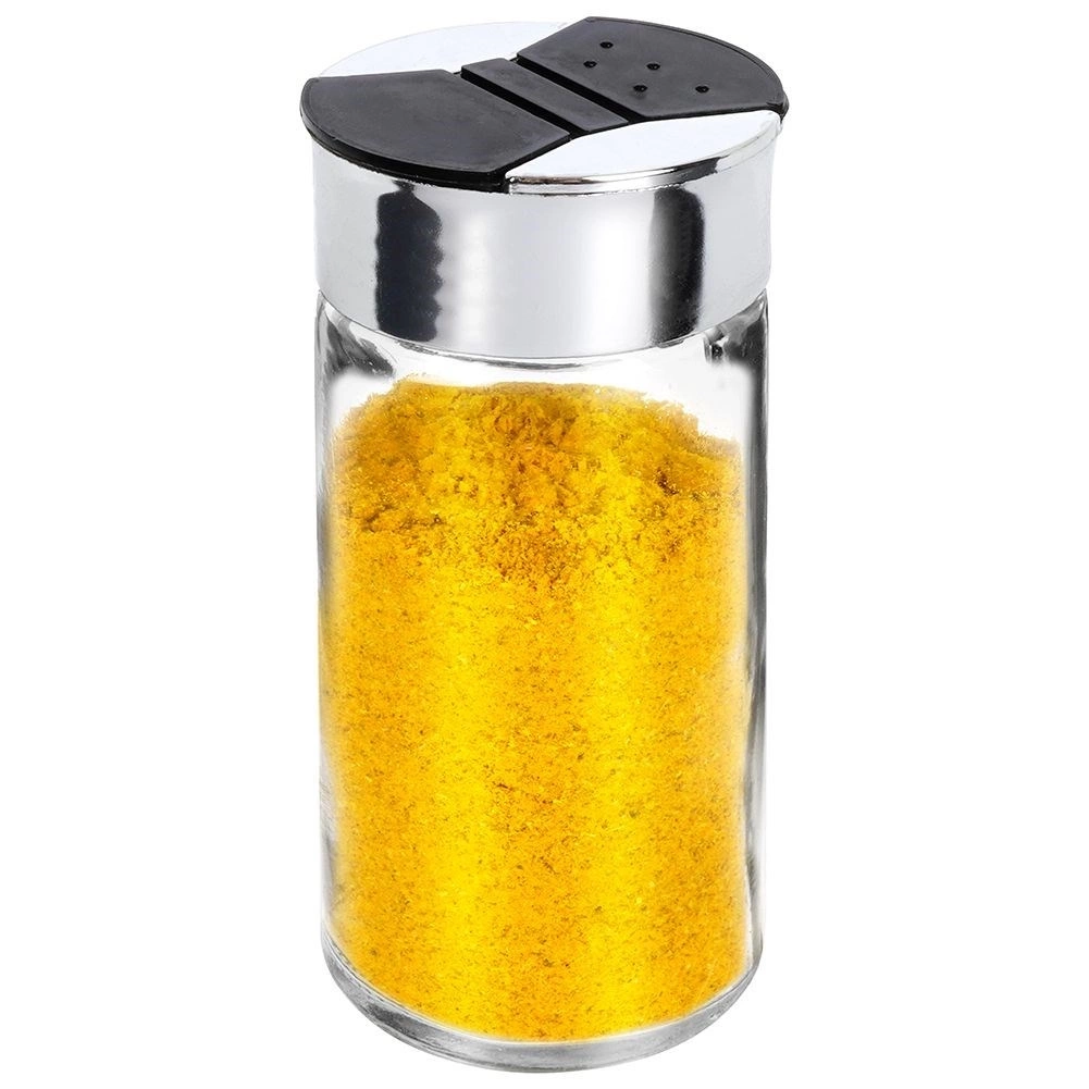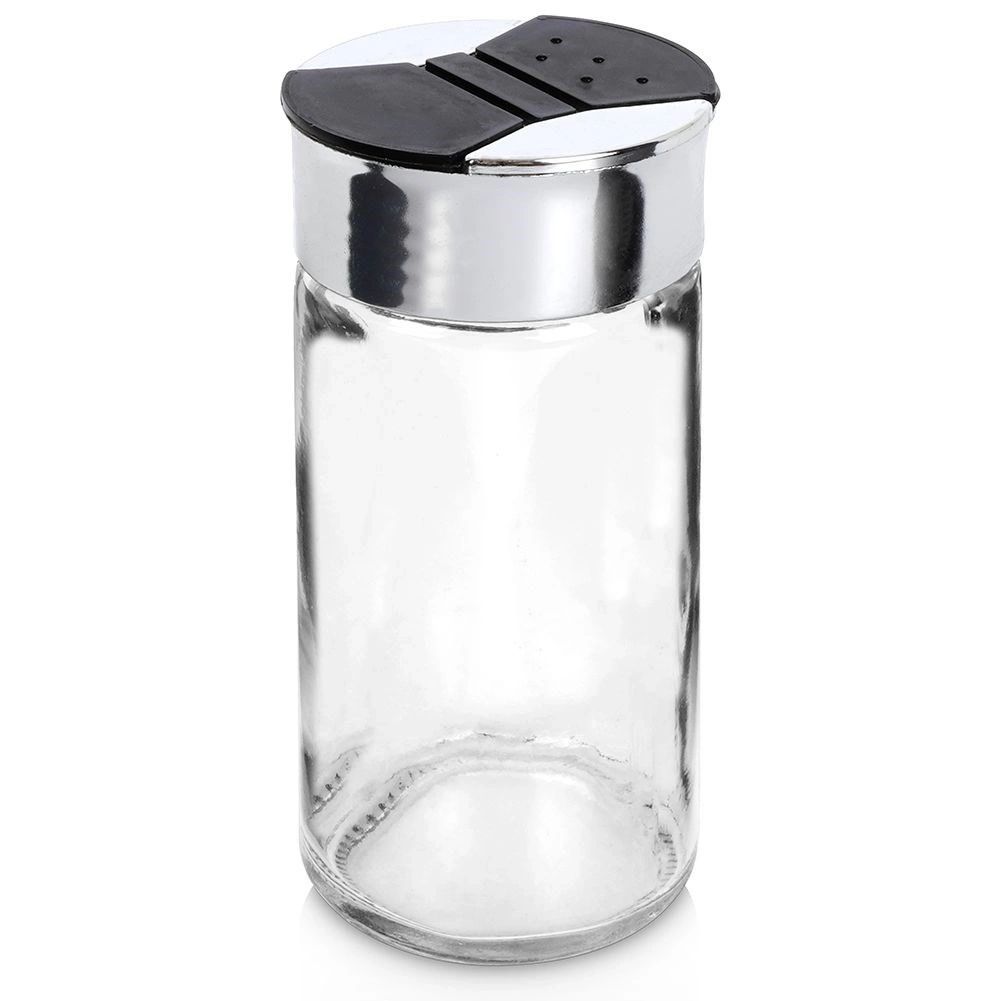 - Szklany pojemnik o pojemności 100 ml na przyprawy z nakrętką. Łatwe dozowanie dzięki otworom, które są zamykane za pomocą praktycznej klapki.