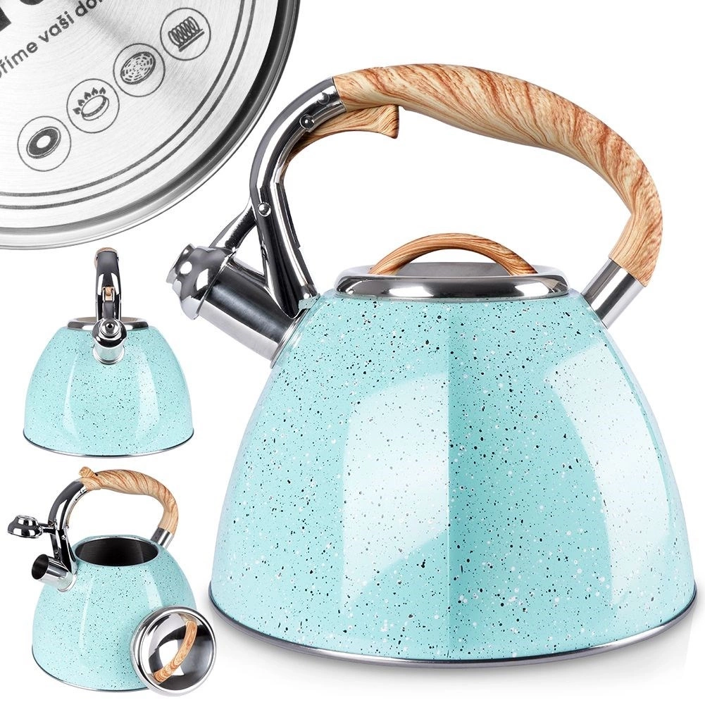 - Czajnik z uchylnym gwizdkiem o nowoczesnym wyglądzie wykonany ze stali nierdzewnej. Nadaje się do każdego rodzaju kuchenek wraz z indukcją.