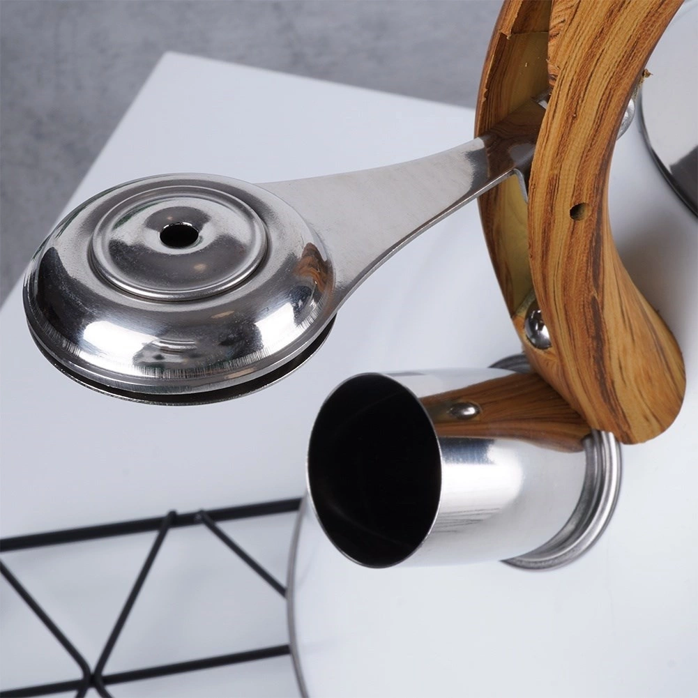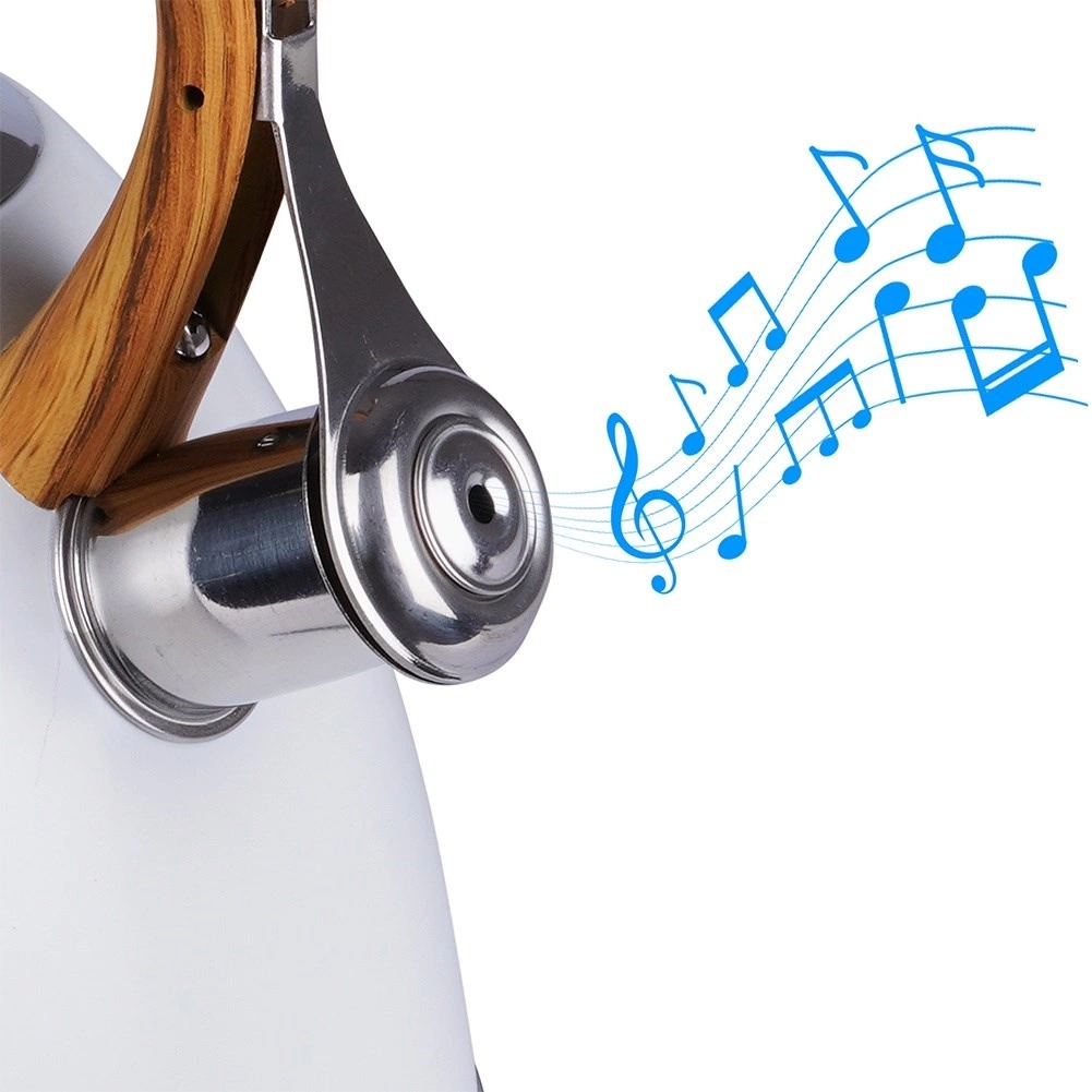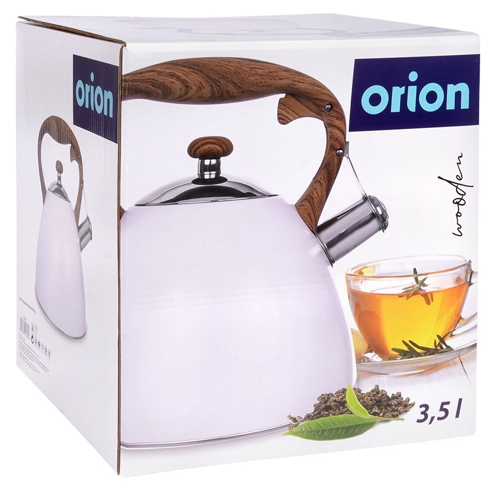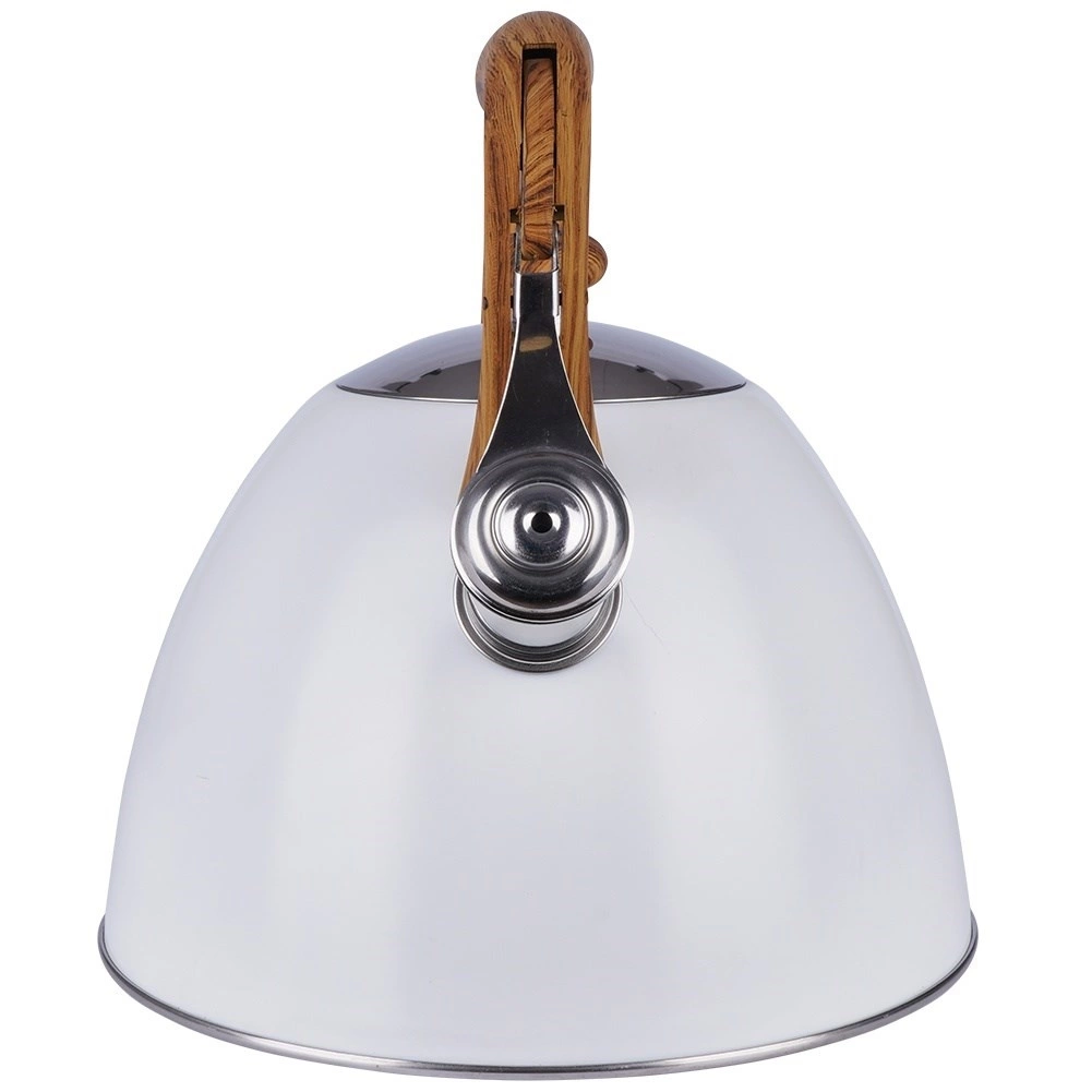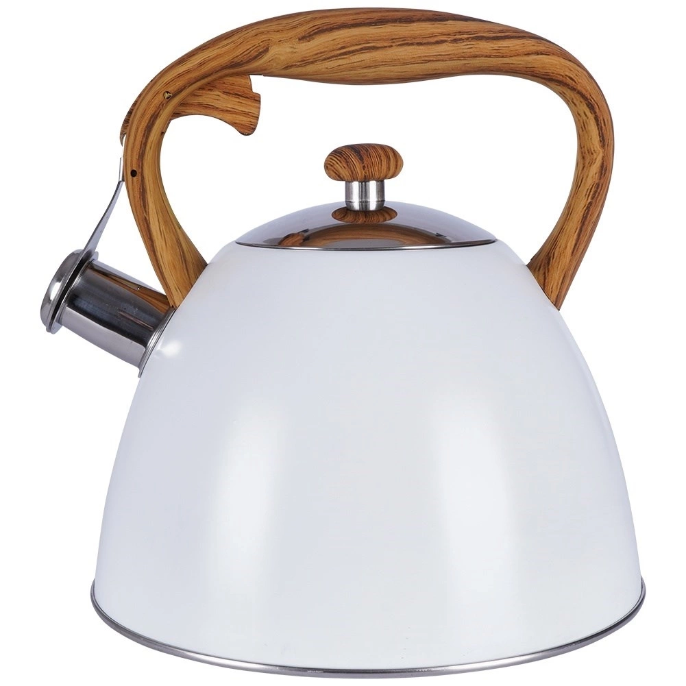 - Wysokiej jakości czajnik z serii Wooden, o pojemności 3 litrów, z uchylnym gwizdkiem. Wyjątkowe połączenie białego korpusu z imitującym drewno uchwytem.