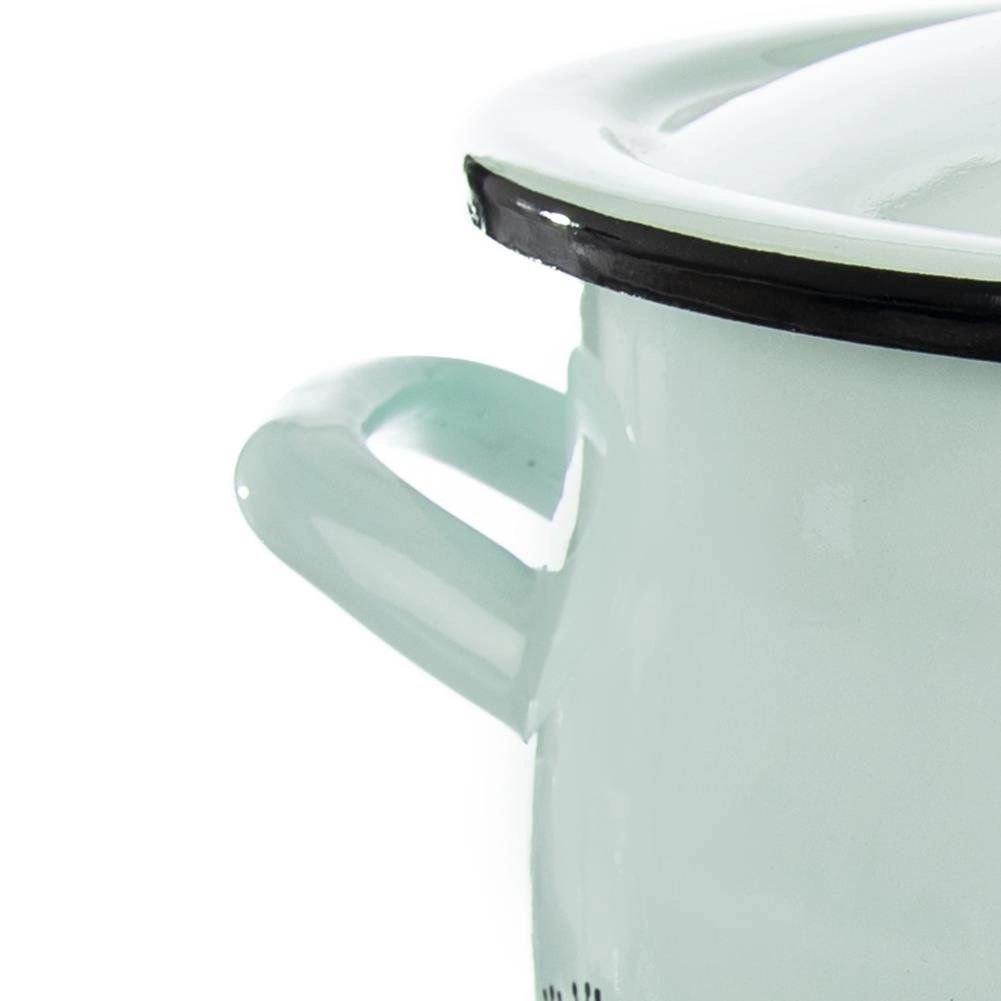 - Poręczny garnek z uchwytami oraz pokrywką, wykonany ze stali emaliowanej.