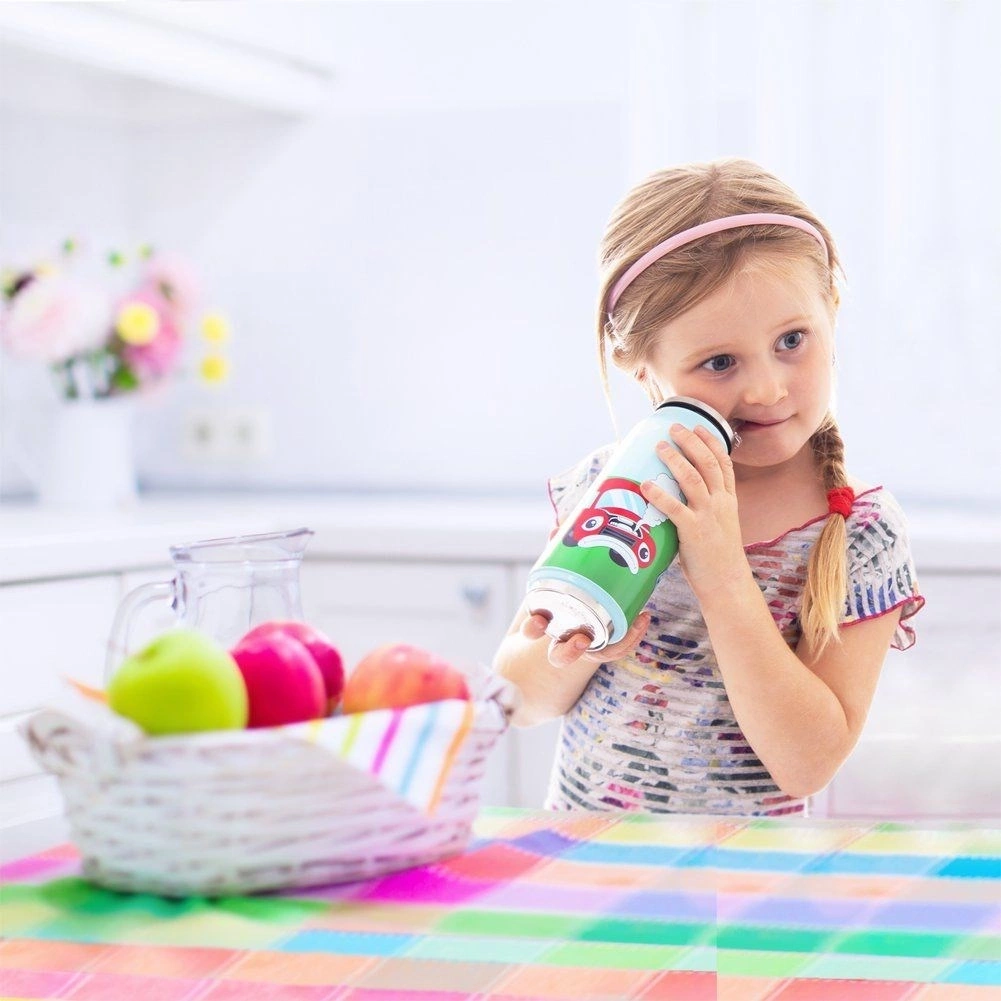 - STALOWY - Wykonany z wysokiej jakości stali nierdzewnej wewnątrz jak i na zewnątrz. Posiada efektowny wzór przedstawiający kolorowe autka.
