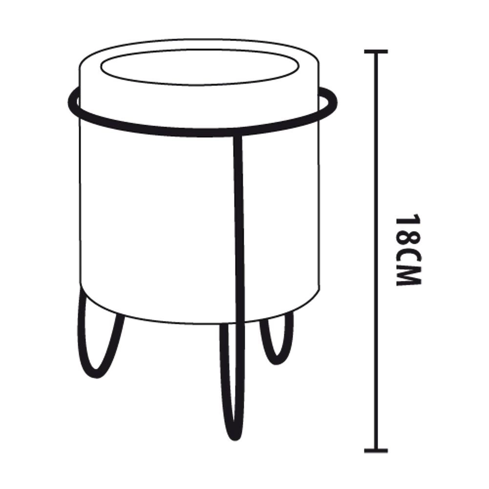 - EFEKTOWNA - Wyjątkowa, betonowa doniczka w czarnym metalowym stojaku. Średnica wewnętrzna osłonki na kwiaty ma 10 cm. Wymiar zewnętrzny: 13,5 x 13,5 x 18 cm.