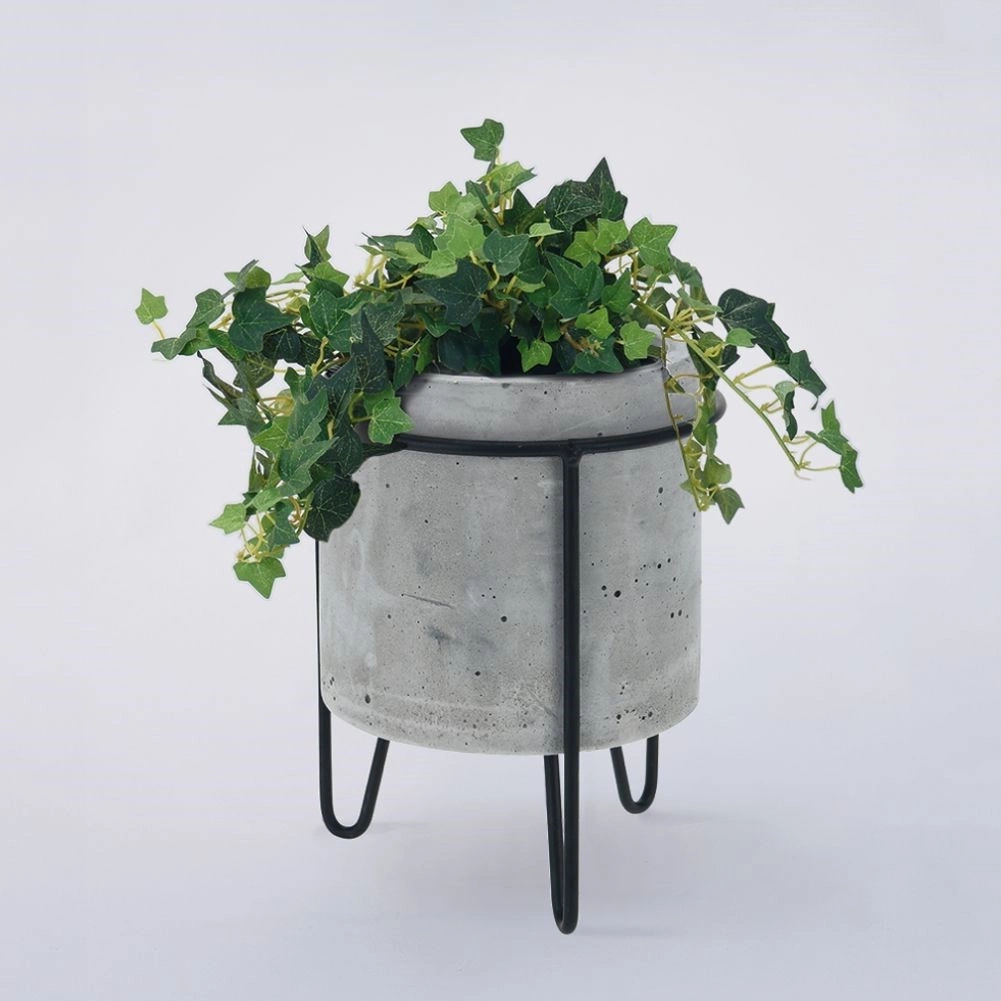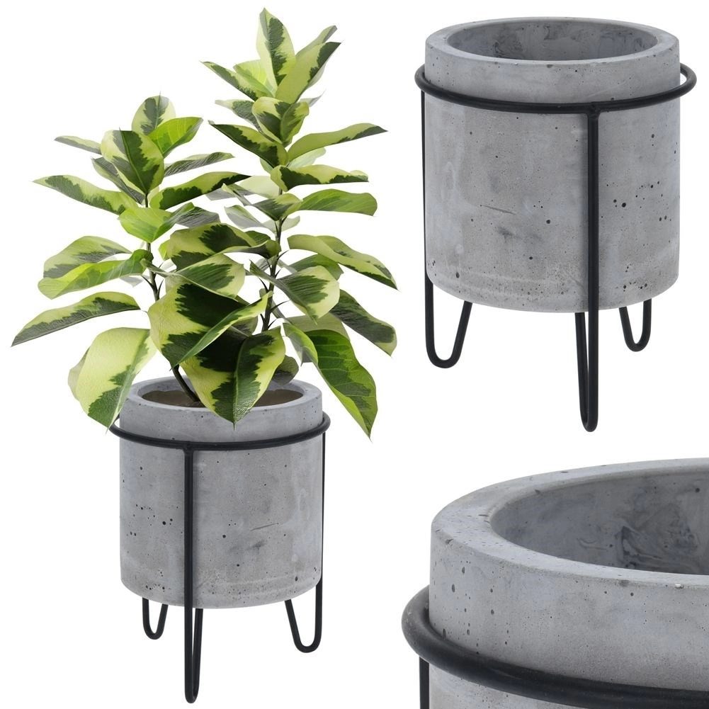 - Wyjątkowa osłonka do doniczek z kwiatami w industrialnym stylu. Donica wykonana z betonu a stojak z metalu w kolorze czarnym. Idealna do roślin żywych jak i sztucznych.
