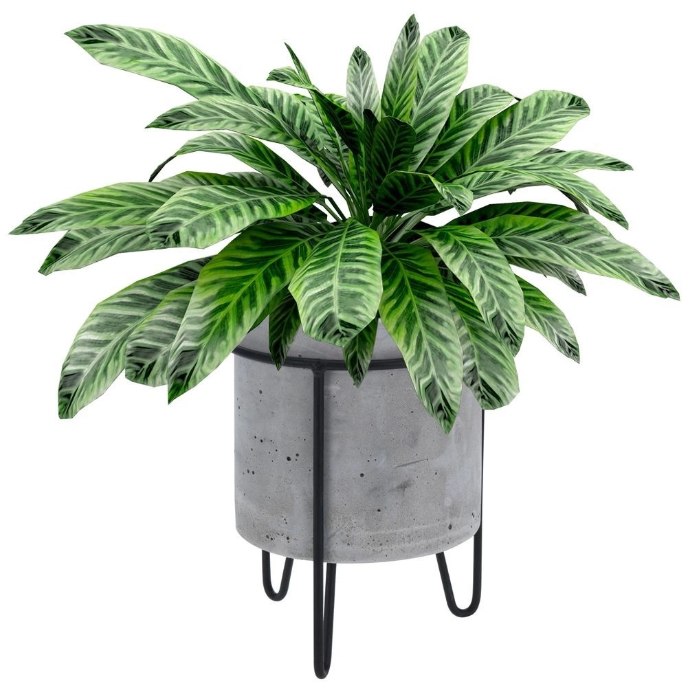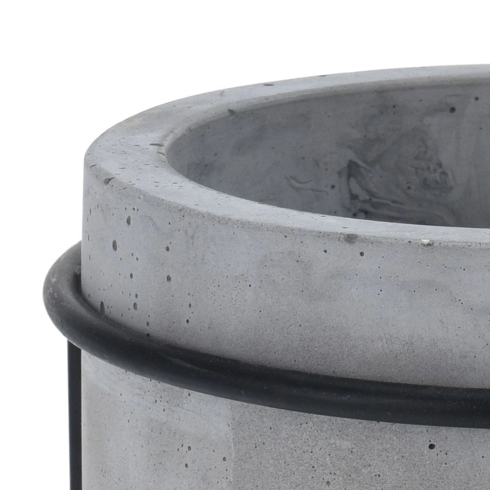Doniczka na stojaku idealna do roślin żywych oraz sztucznych. Posiada loftowy styl, gdyż jest wykonana z betonu oraz czarnego metalu, co stanowi modne połączenie. Idealnie pasuje do każdego wnętrza. Będzie pięknie prezentować się na tarasie, balkonie lub w ogrodzie. Oryginalny produkt holenderskiej marki Home Styling Collection. Wyprodukowano zgodnie z europejskimi standardami.