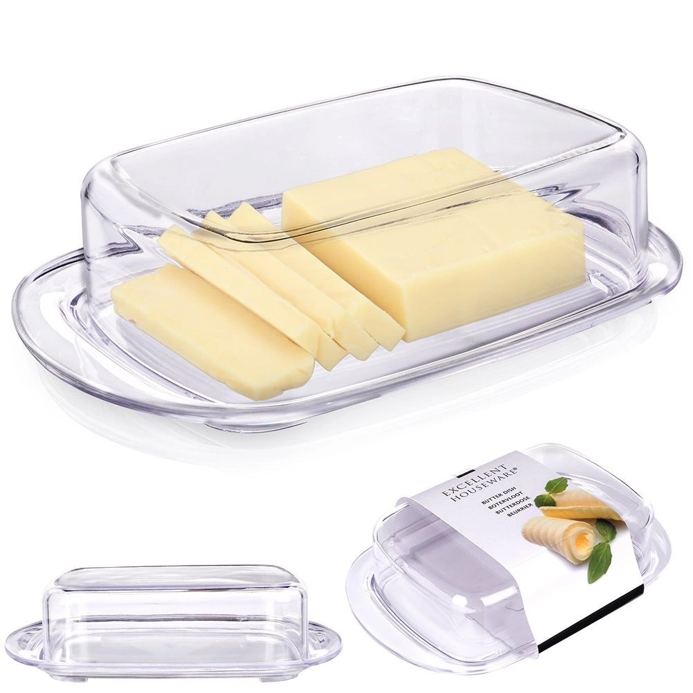 - Przezroczysta maselniczka idealna do przechowywania, serwowania masła. Pozwala zachować świeżość i zalety smakowe masła, a jednocześnie chroni je przed zepsuciem.