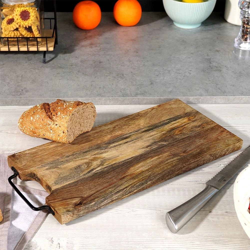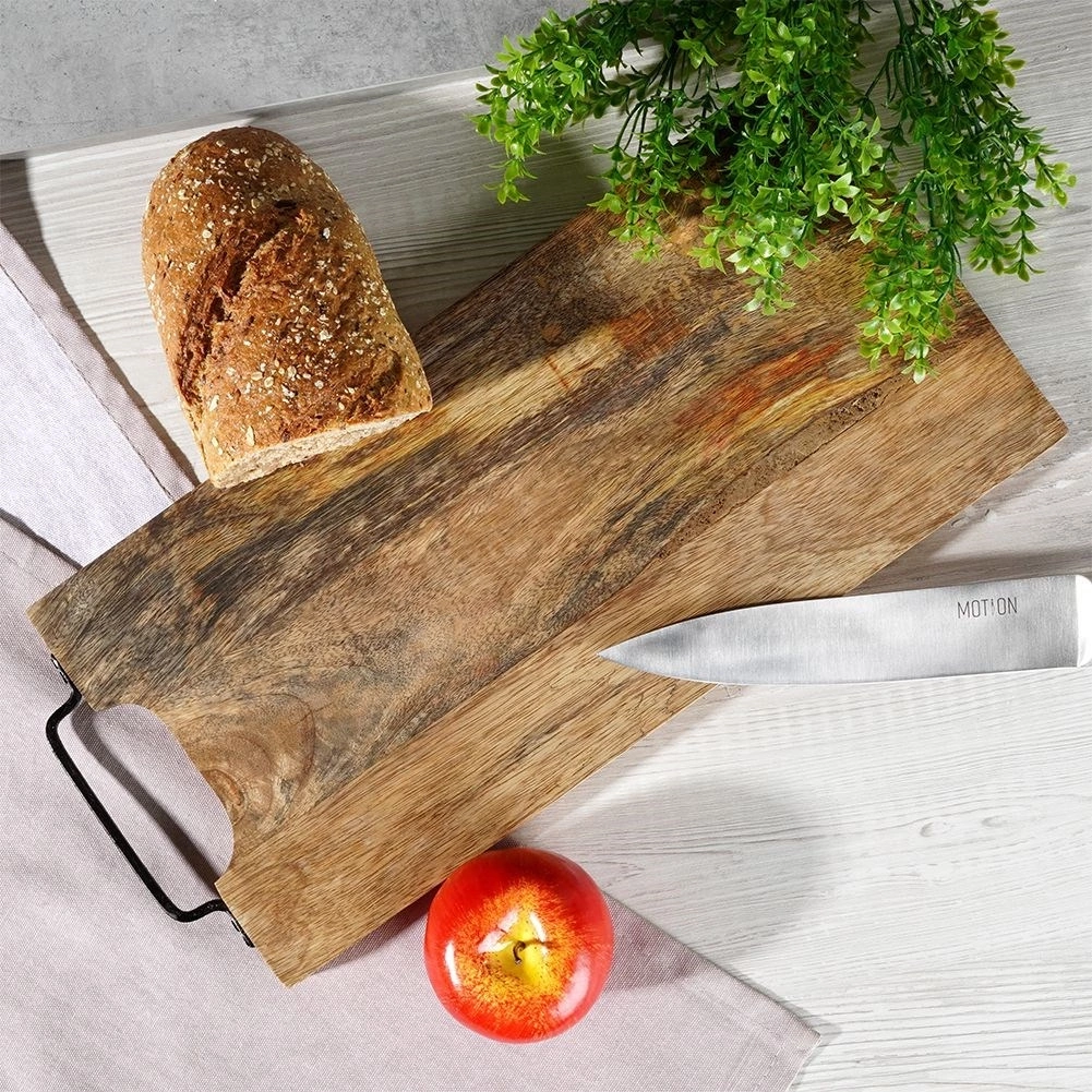 - Kuchenna deska wykonana z drewna mangowca. Posiada wygodny uchwyt, który ułatwi użytkowanie. Sprawdzi się do krojenia oraz serwowania. Naturalny wygląd.