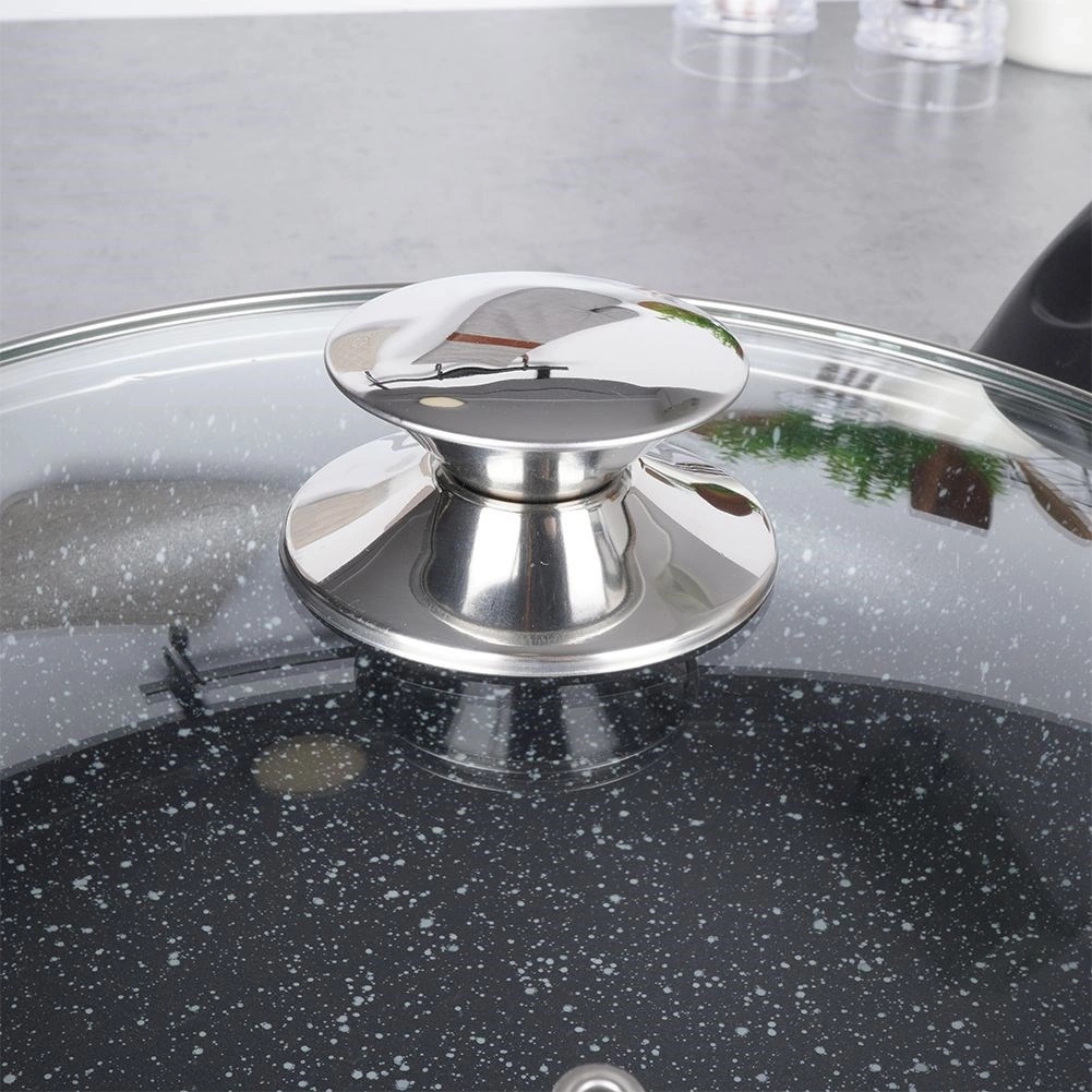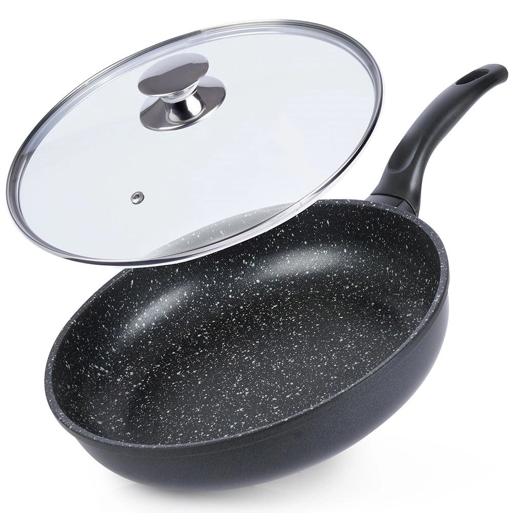 Patelnia granitowa 28 cm GRANDE z pokrywką do smażenia duszenia
