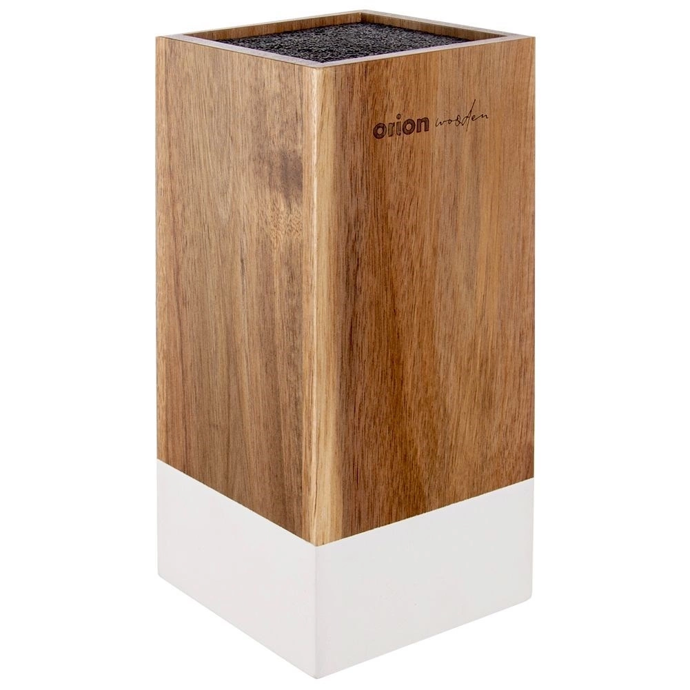 - Stojak z drewna akacjowego na noże z włosiem z tworzywa sztucznego zapobiega porysowaniu noży i innych narzędzi kuchennych - nożyczek, obieraczek, itd.