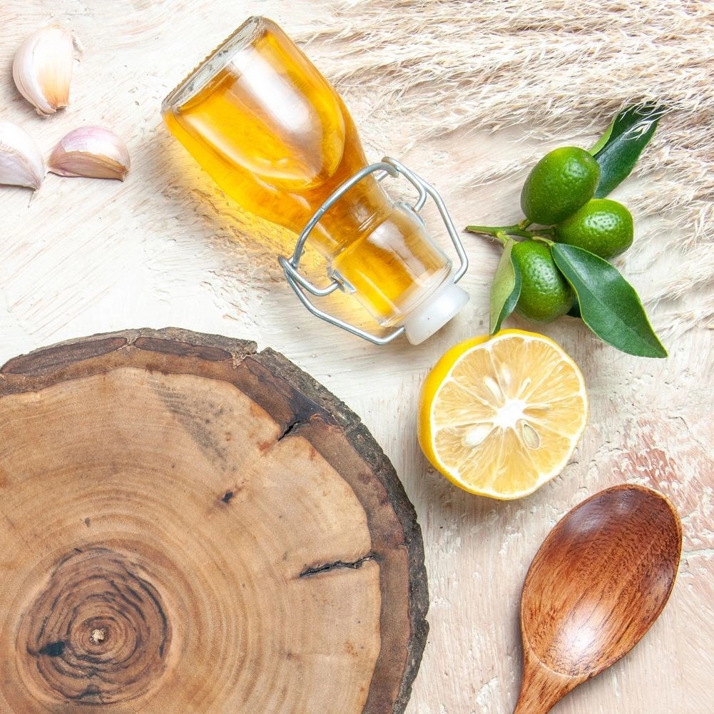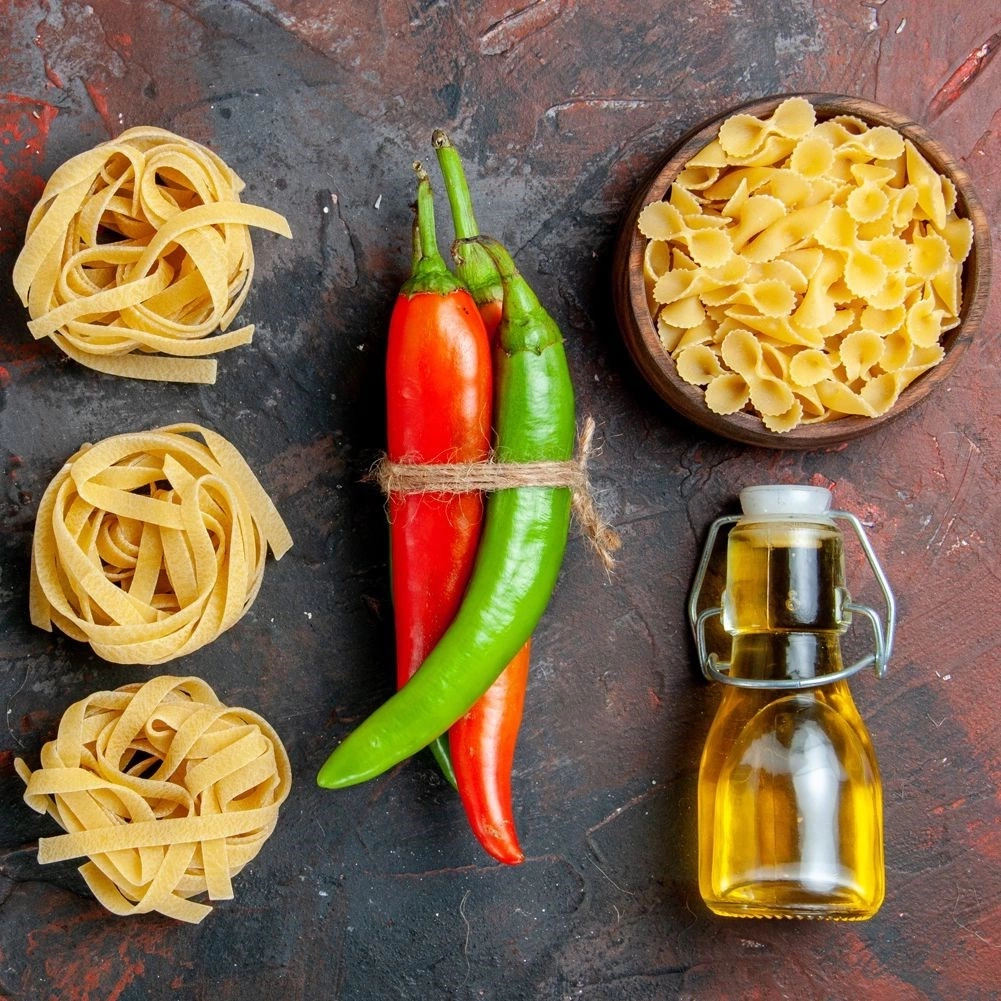- Butelka szklana do przechowywania oraz podawania oliwy lub octu. Świetnie będzie się w niej prezentować oliwa z dodatkami: czosnkiem, ziołami, chilli.