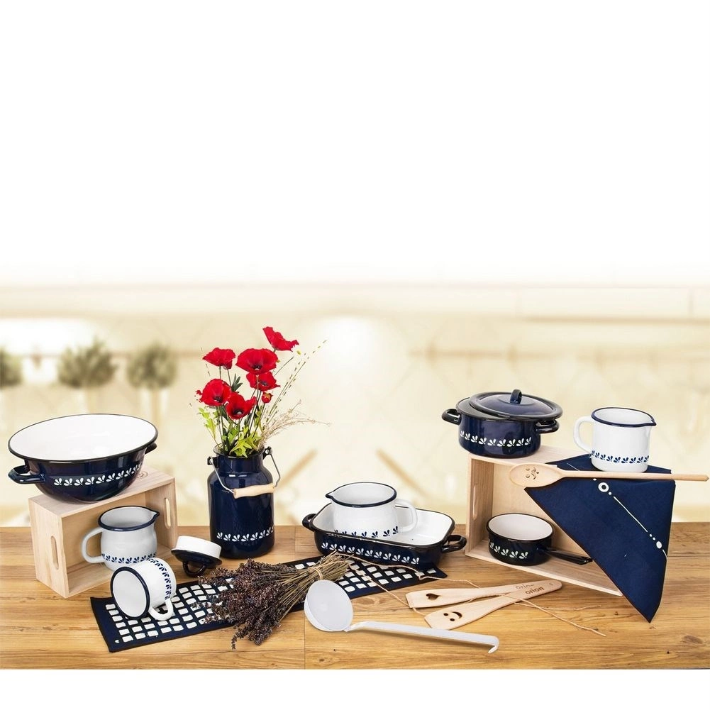 - Tradycyjny emaliowany garnek z długim uchwytem. Idealny do przygotowywania sosów oraz podgrzewania niewielkiej ilości jedzenia.