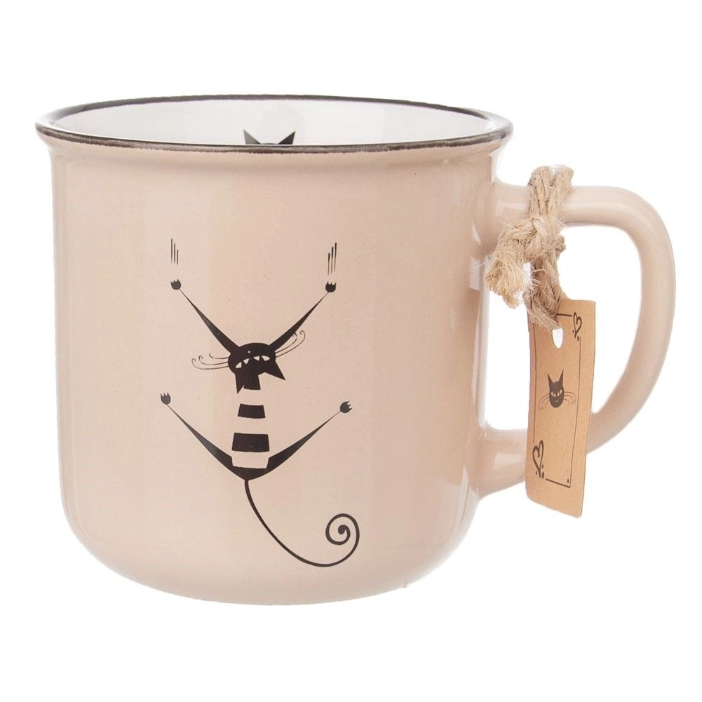 - CERAMICZNY - Kubek wykonany z wysokiej jakości ceramiki w kolorze beżowym a dekor w kolorze czarnym. Wnętrze kubka jest białe.